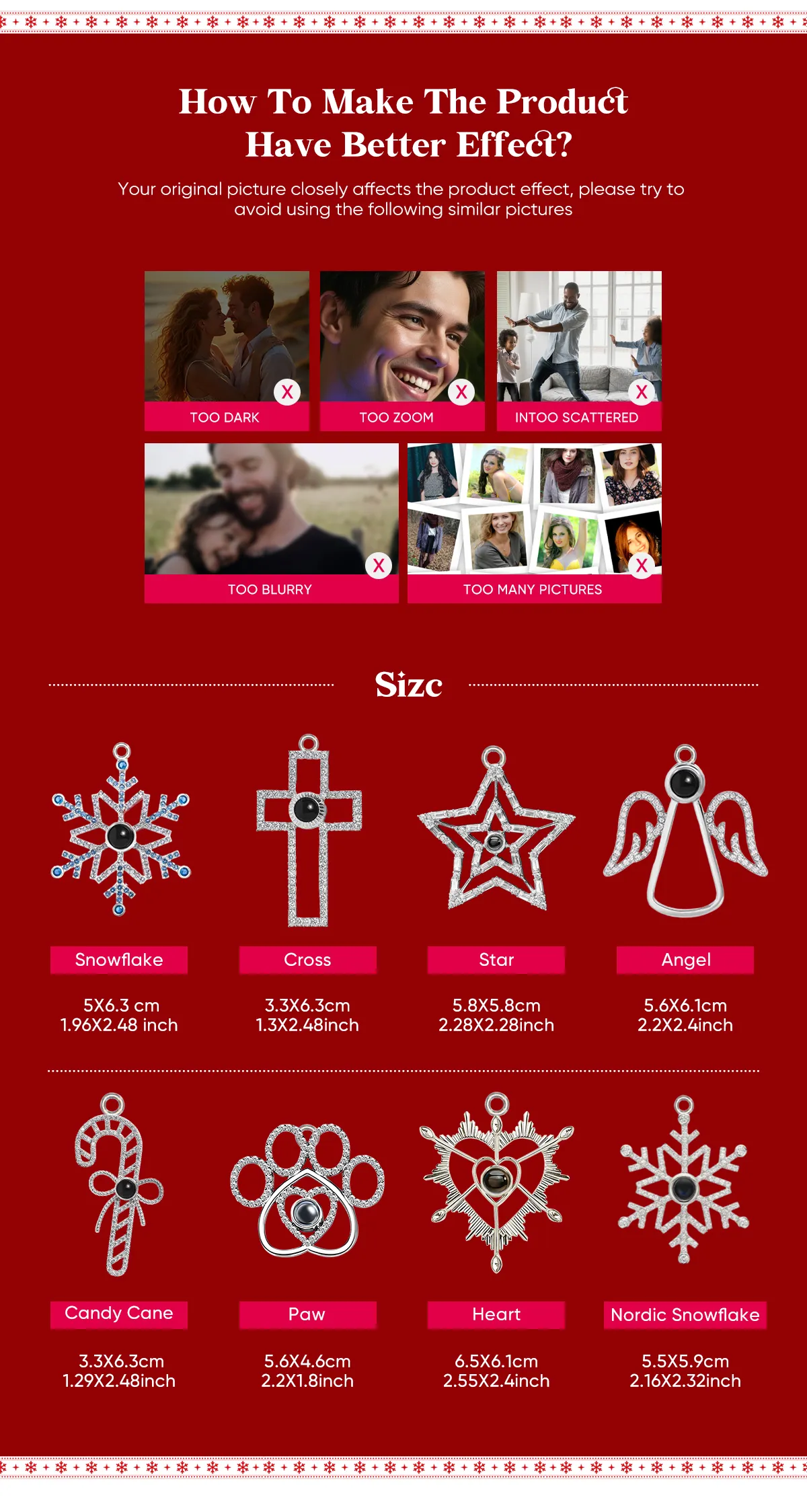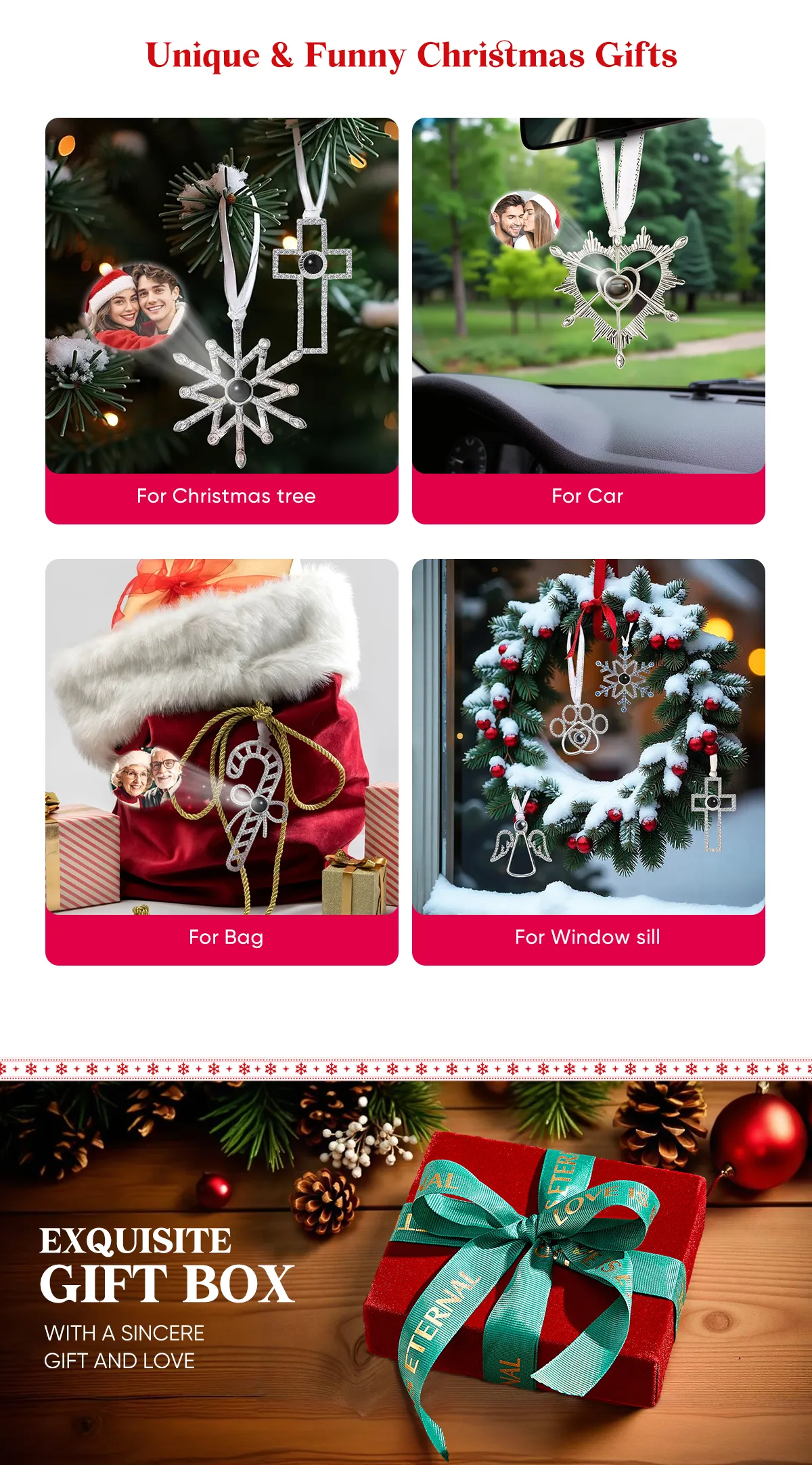 Personalized Heart Photo Tassel Photo Ornament Projection Gem Ornament Christmas Tree Ornament Christmas Gifts