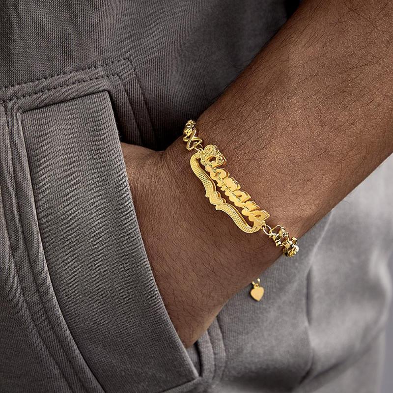 Personalized Hip Hop Name Bracelet Nameplate With Heart Decor Trendy Bracelet Jewelry Gifts For Men