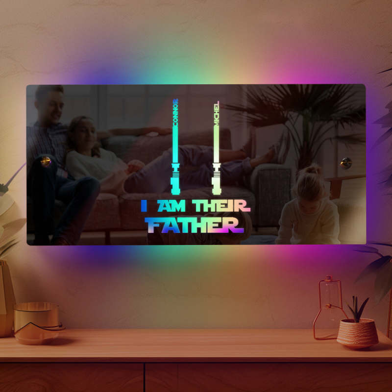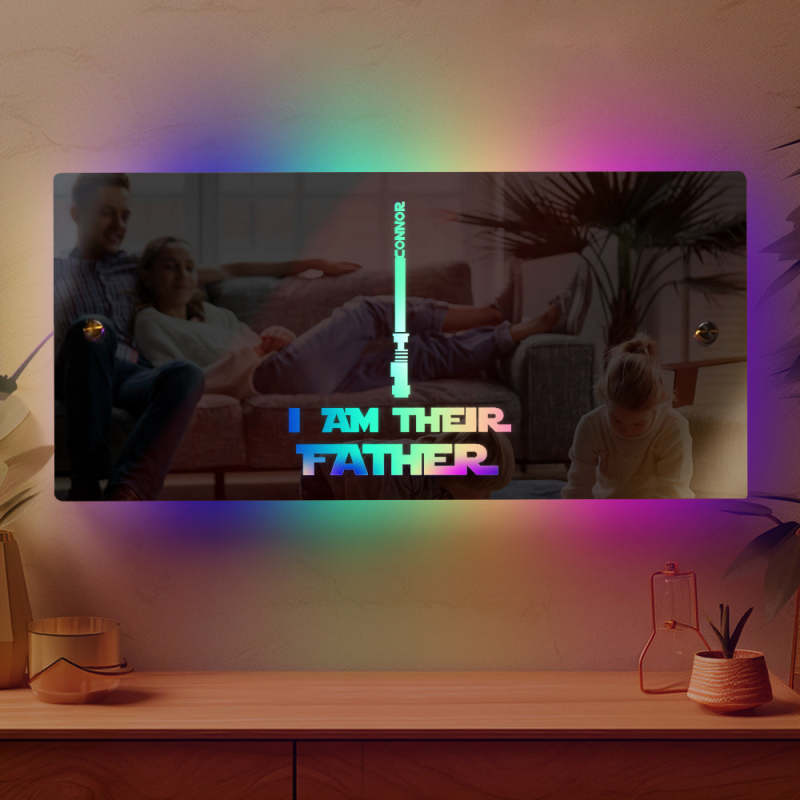 Our personalized I Am Their Father mirror light is a wall decor made from premium mirrored acrylic. This custom sign is lightweight, shatterproof, and available in 3 sizes. After fixing the mirror to the wall the protective film should be removed to make the mirror light works better. This mirror light is the perfect complement to any bedroom, perfectly integrated with various decoration styles.