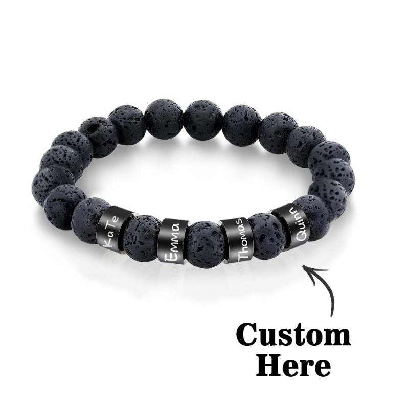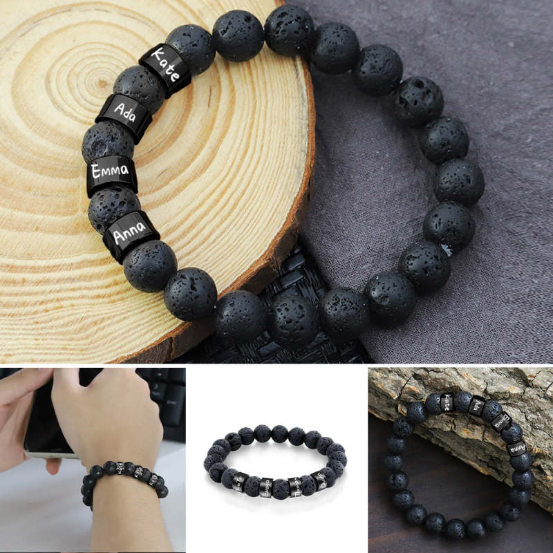 This personalized name black lava stone bead bracelet is a great gift idea for birthday, Father's day, Thanksgiving, Christmas or more, durability useful for any occasion! With this amazing bead bracelet, you can impress the person you love! You can customize 1-4 names on this bracelet.
