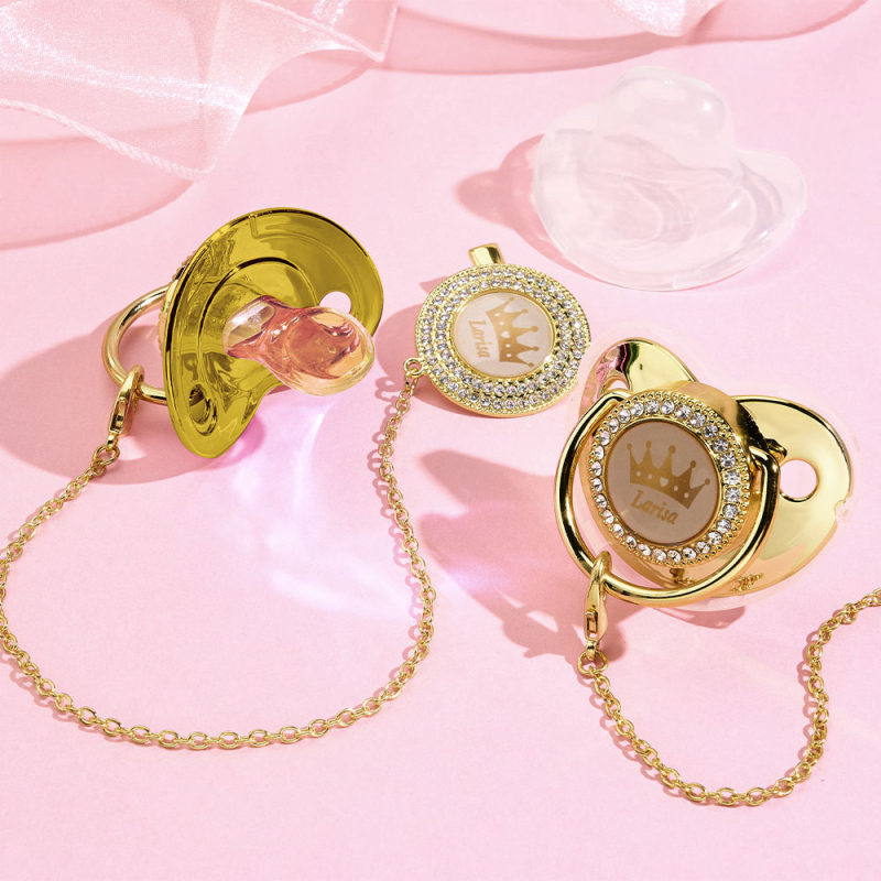 Make your baby’s essentials safe, stylish, and unforgettable with this luxurious personalized pacifier!