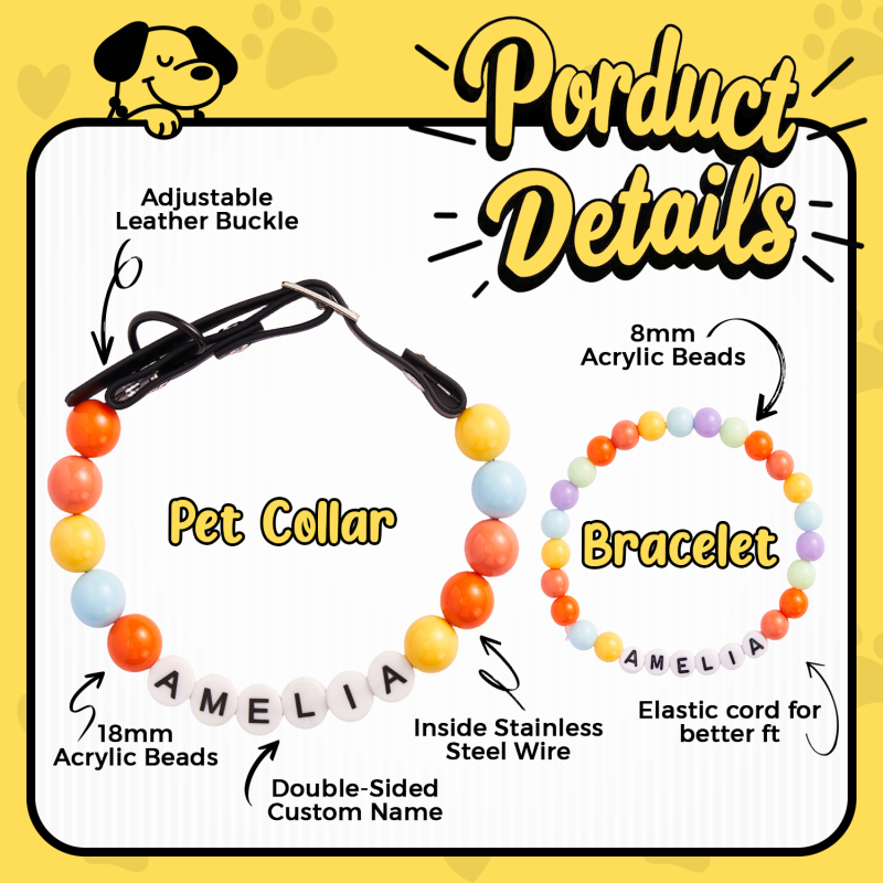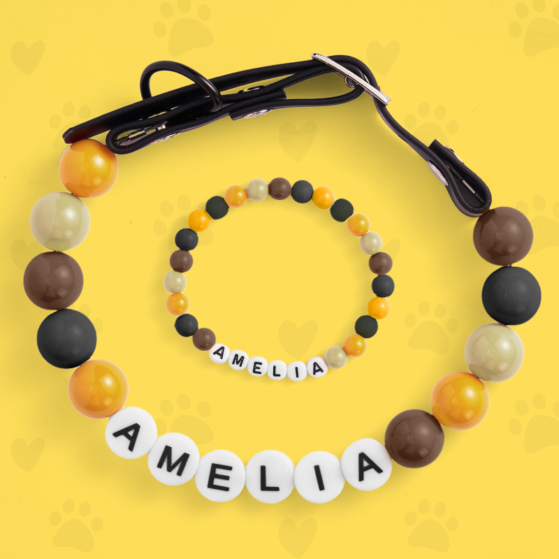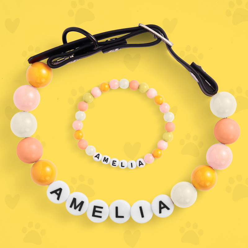 Each collar is lovingly personalized with your pet’s name using fun, colorful beads. And now, you get a bracelet to match - totally FREE! Wear it to show off your love and style together.