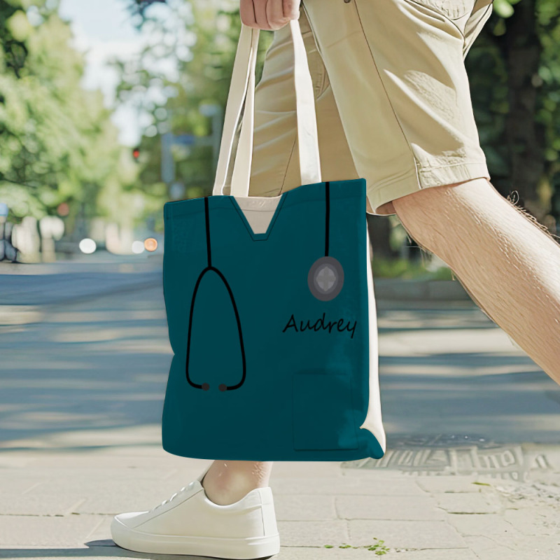 This custom tote bag is not just a bag; it's a token of gratitude and recognition for the selfless dedication and care that nurses provide every day. It's a perfect present for birthdays, Nurses' Day, or any occasion to show your appreciation.