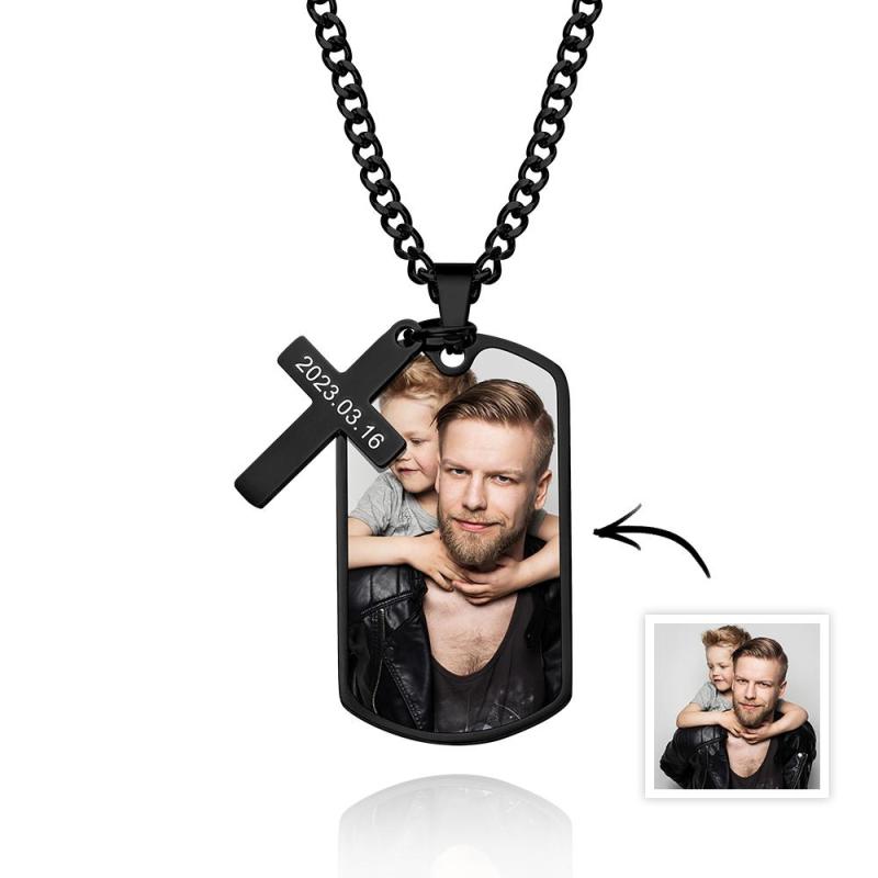 A custom engraved necklace is a perfect Fathers' Day gift that symbolizes the love and bond between a father and his children. This family necklace is designed with a cross pendant that includes the date, special text & photo, making it a beautiful and sentimental piece of jewelry that can be cherished for a lifetime.
