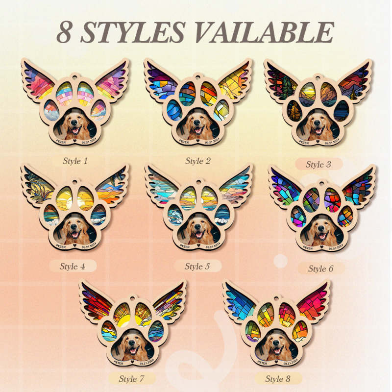 Celebrate the memory of your furry friend with our personalized pet suncatcher ornament. This special ornament features your pet's name and photo, making it a beautiful memorial gift for pet lovers. Each one is custom-made and captures the unique bond between you and your beloved pet.