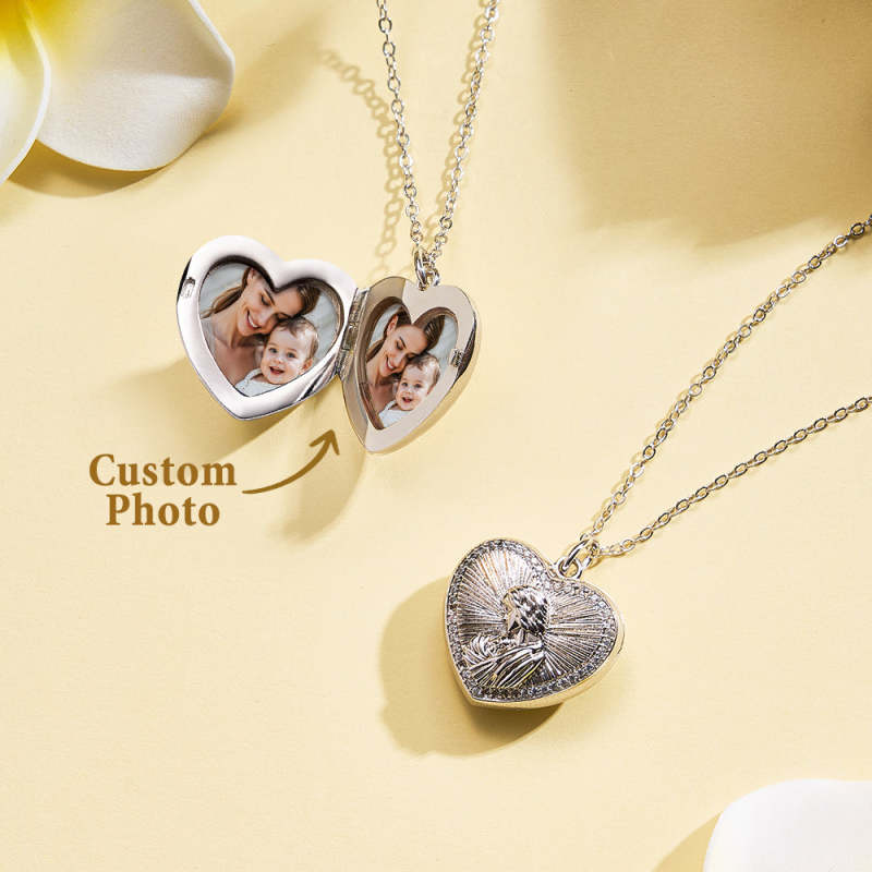 The locket features a beautiful design, with a mother embracing her child, symbolizing the unconditional love between a mother and her child. The intricate design adds a touch of elegance and the option to customize it with a special photo makes it a truly unique and heartfelt present. This personalized locket photo necklace is a perfect gift to celebrate birthdays or honor moms on Mother's Day.