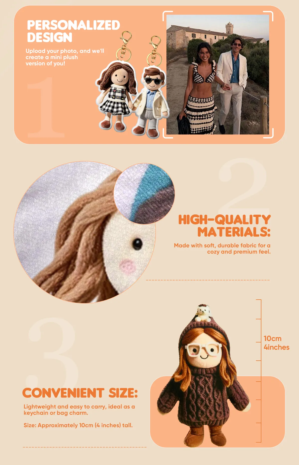 Personalized Photo Plush Doll Keychain Mini Me Plush Keychain Gifts for Boyfriend