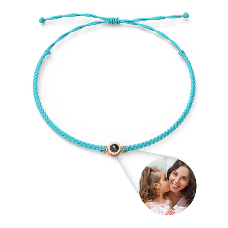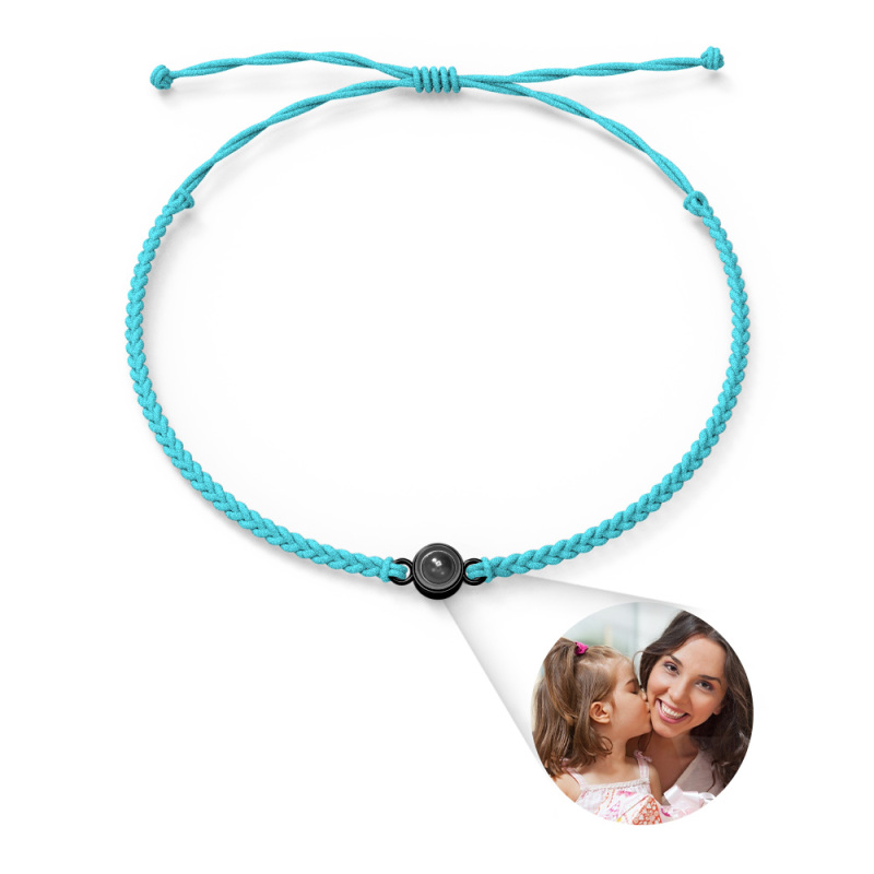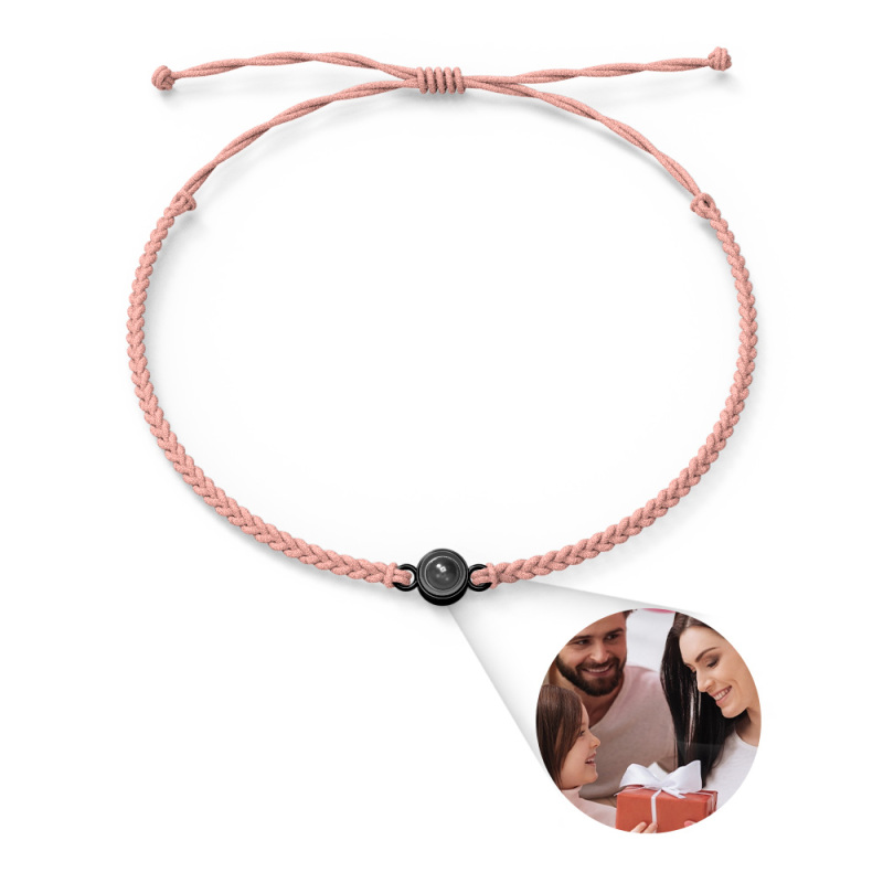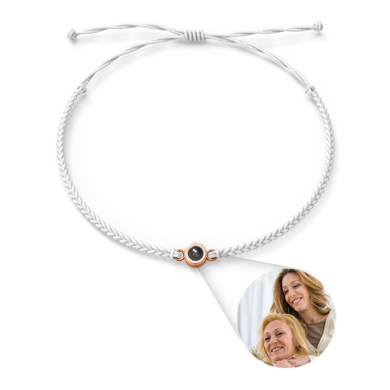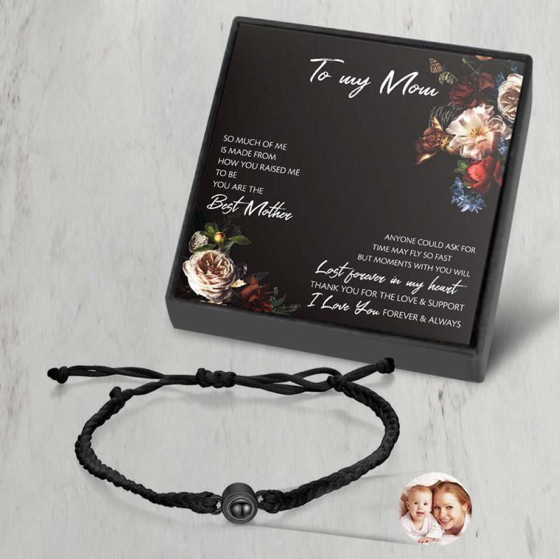 Personalized Photo Projection Couple Bracelet Braided Black Rope Circle Bracelet Gift for Mother's Day