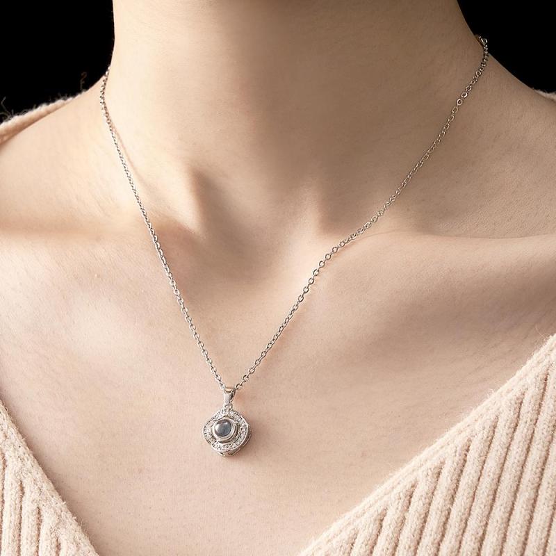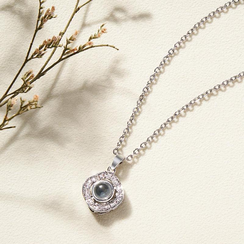 Tell someone special how much you love them with this elegant photo-projecting necklace. Simply hold the pendant up to a light source, and it will project the photo. A perfect gift for birthdays, anniversaries, weddings, Mother's Day, Valentine's Day, and Christmas Day. It's recommended to remove the necklace when around water or in any circumstances where the necklace may get water or body oils on it.