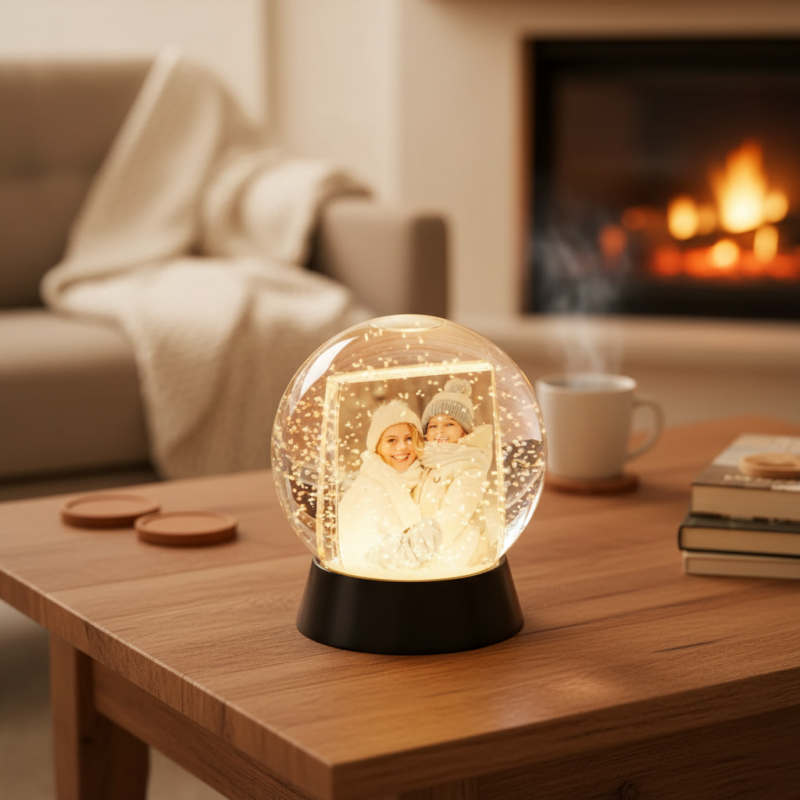 This personalized photo snow globe lets you display a picture, making it the perfect keepsake for couples, families, or pet lovers. Each globe is handcrafted with care , simply upload your one favorite photo, and we’ll turn it into a stunning keepsake that sparkles with every shake.