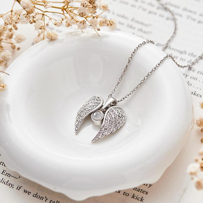 Personalized Picture Projection Necklace with Sliver Wings Special Present for Thanksgiving Day