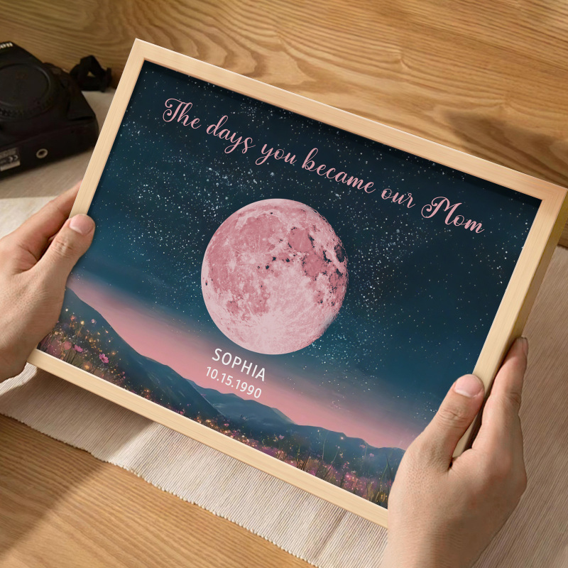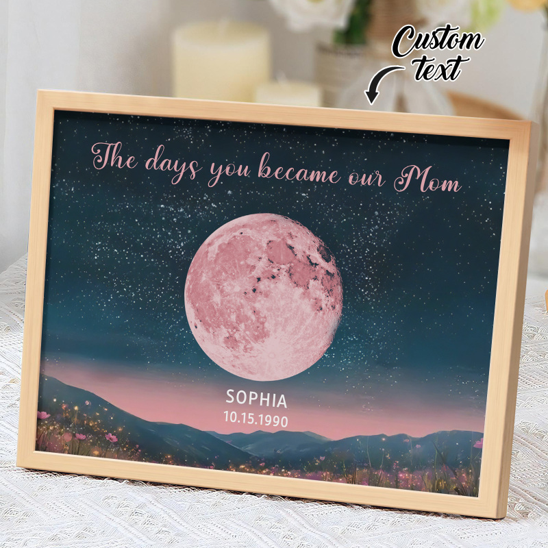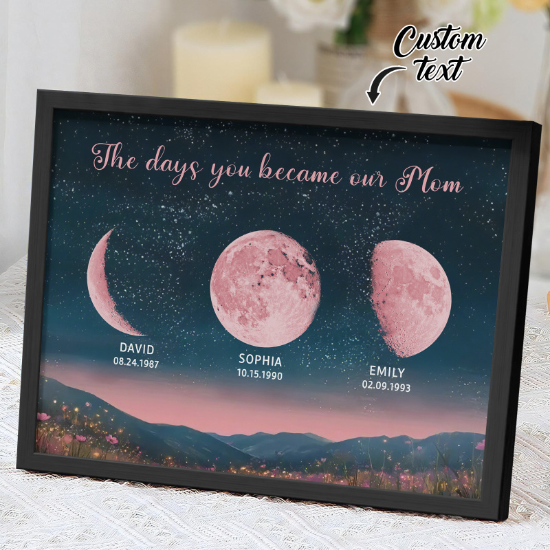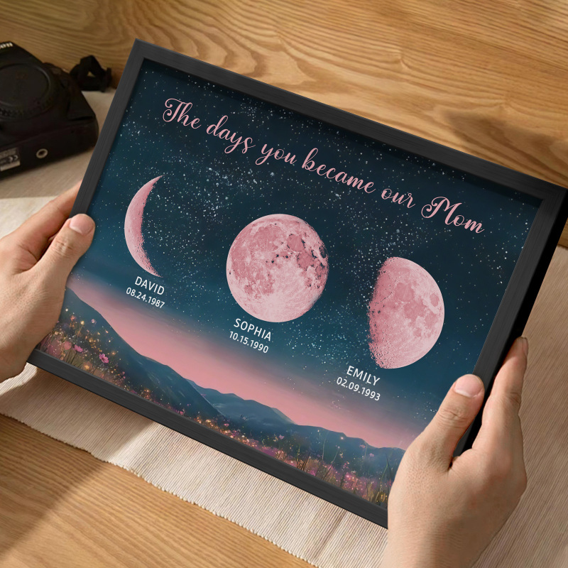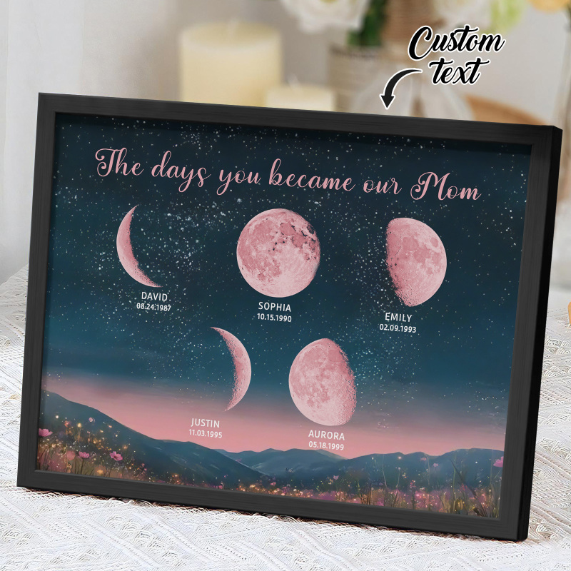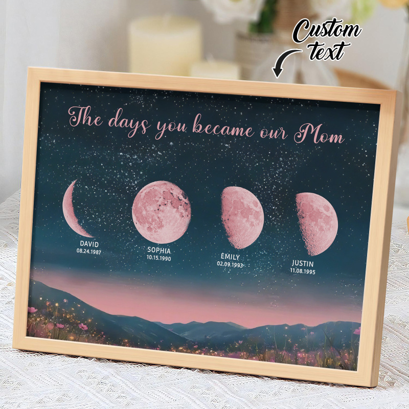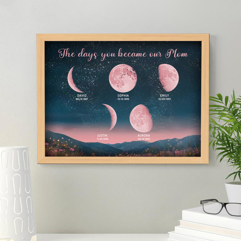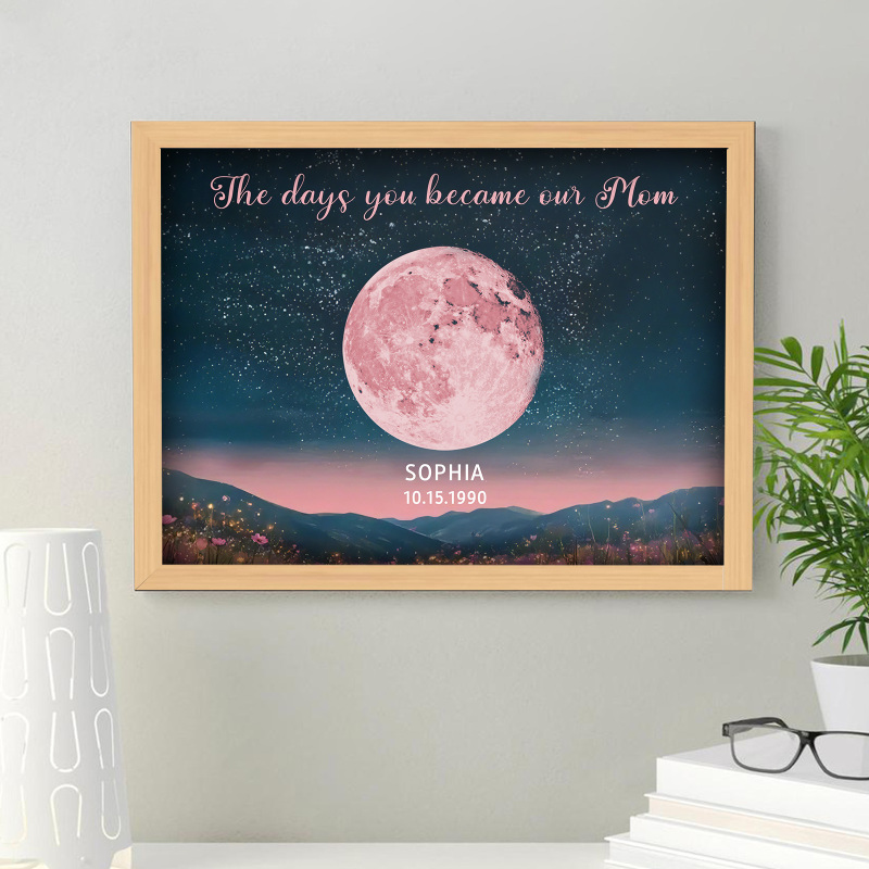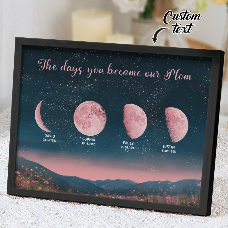 Personalized Pink Moon Phase Custom Birth Moon Beautiful Hill At Night With Kids Names Ideal Gifts for Mother's Day Gifts
