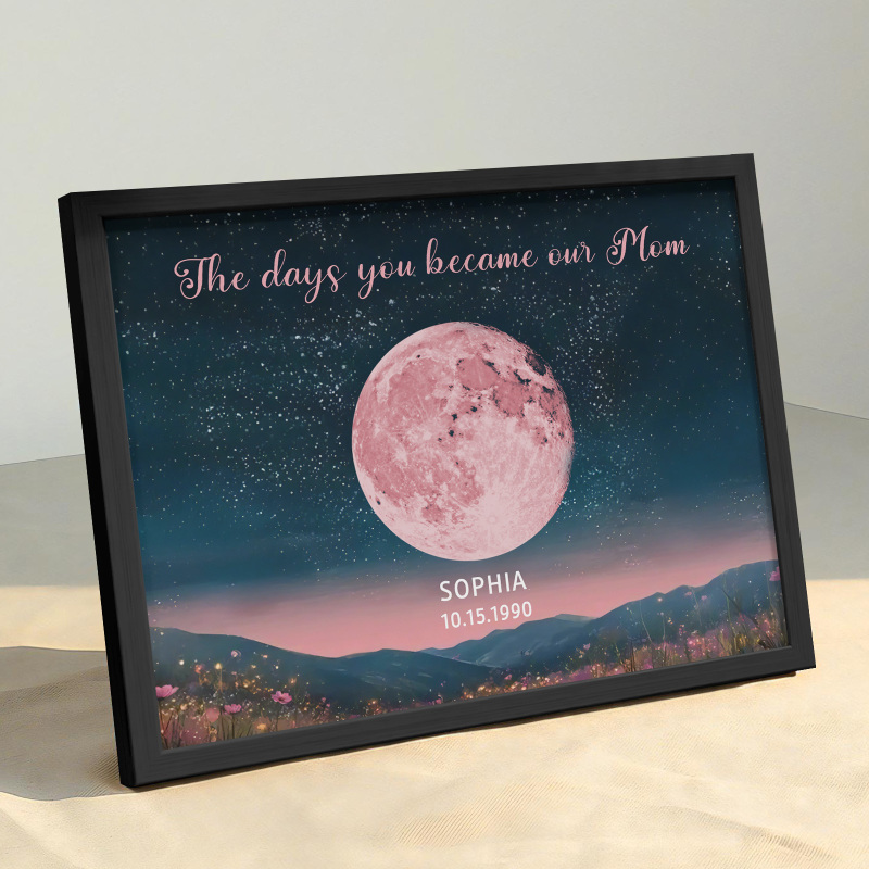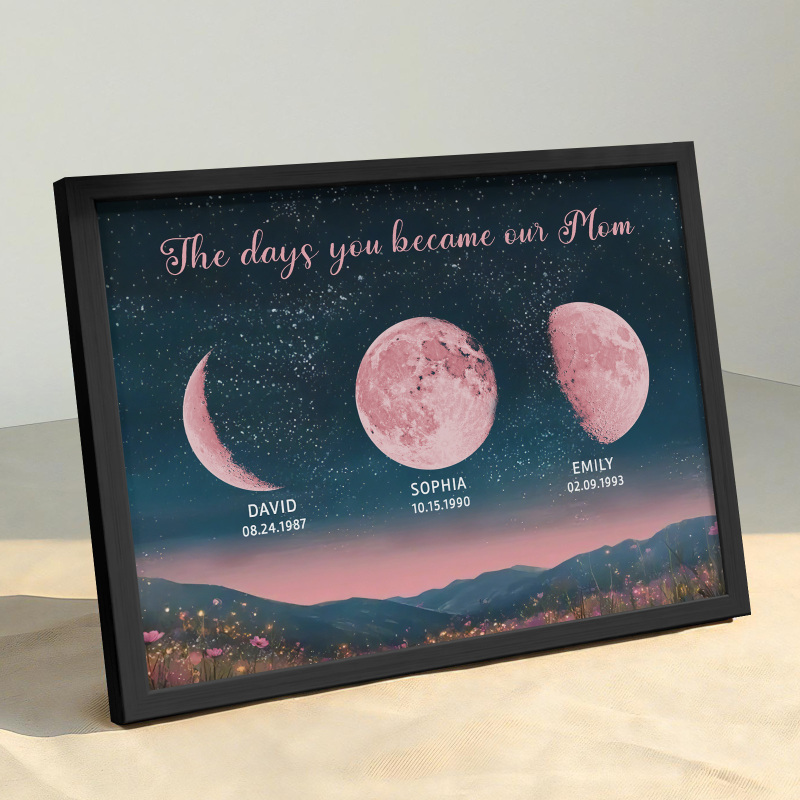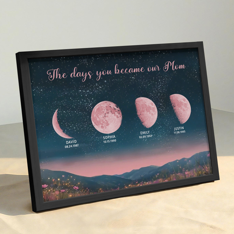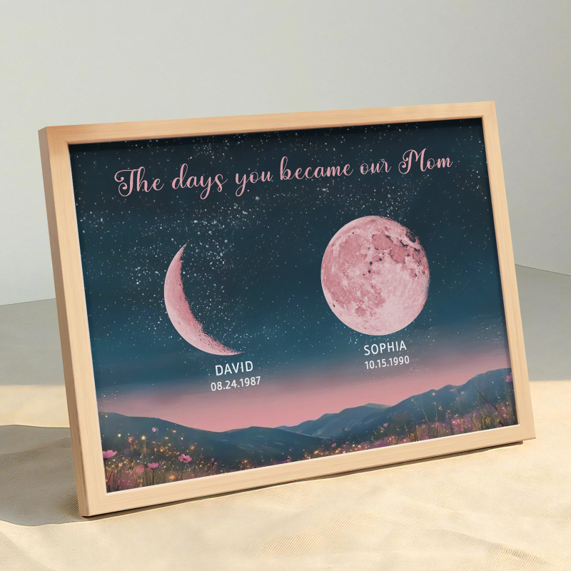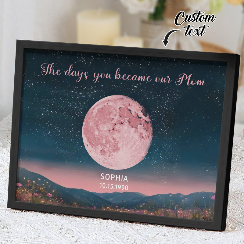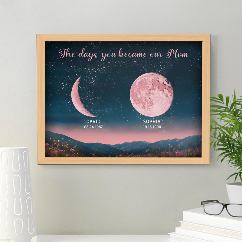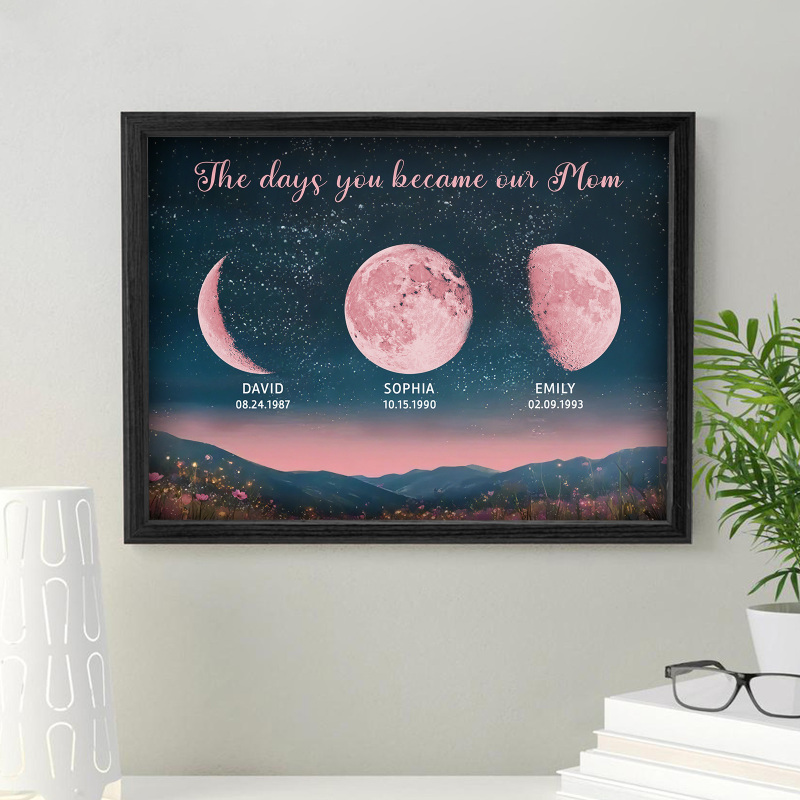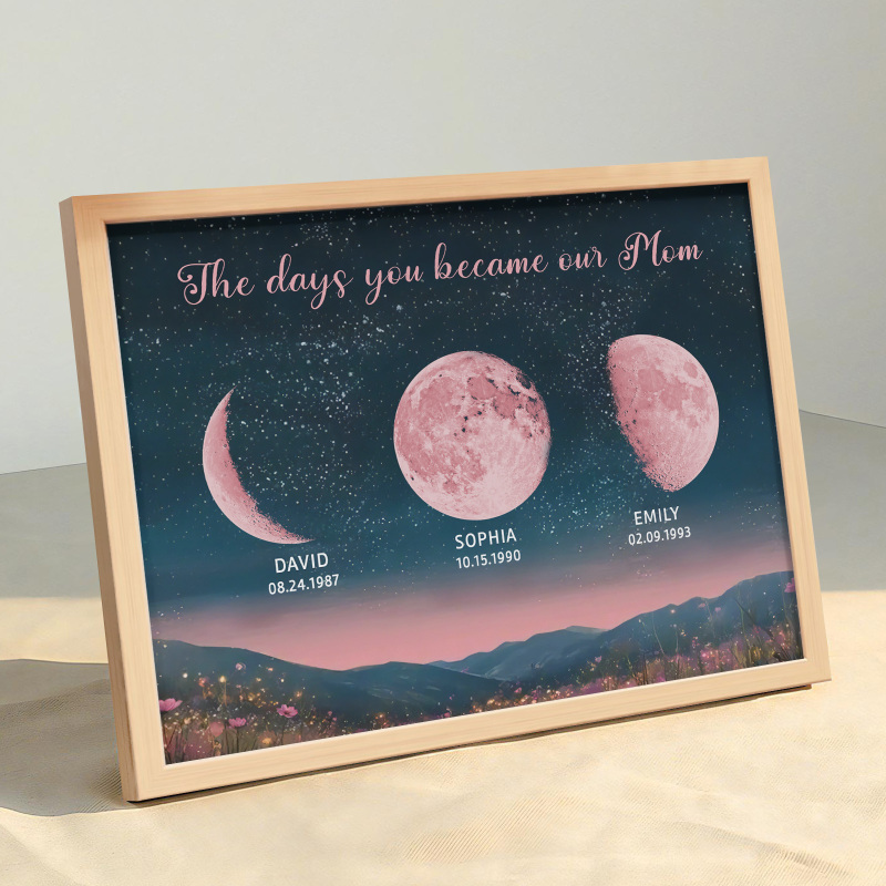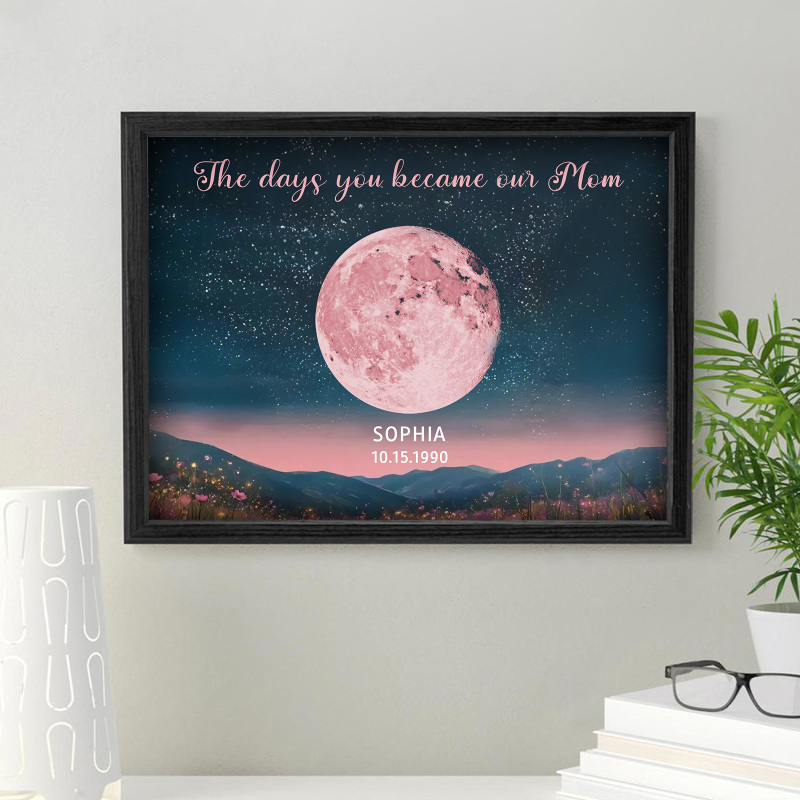 Personalized Pink Moon Phase Custom Birth Moon Beautiful Hill At Night With Kids Names Ideal Gifts for Mother's Day Gifts