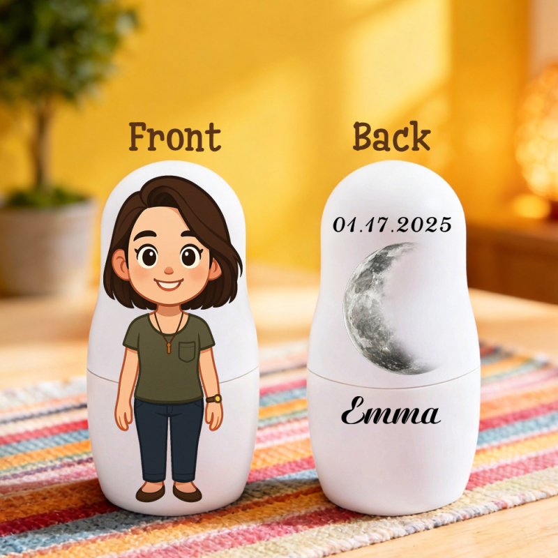 Personalized Portrait Nesting Doll Custom Moon Phase and Text Portrait Cartoon Style Gift Family Gift Couple Gifts