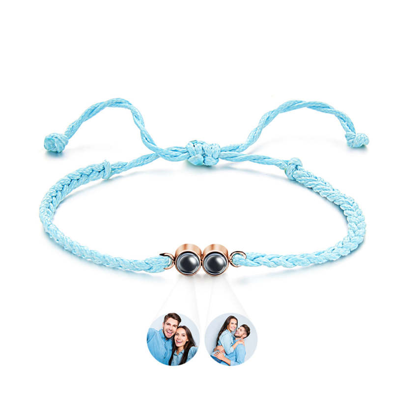Elevate your gifting game with our Personalized Projected Picture Bracelet. This unique accessory features a multicolor braided rope, customizable with your choice of two photos. Perfect for capturing cherished memories or showcasing your favorite moments, this bracelet is a thoughtful and stylish gift option. With its simple yet eye-catching design, it adds a personal touch to any outfit. Whether it's for a special occasion or just to show someone you care, this bracelet is sure to make a lasting impression. Shop now and create a personalized gift they'll treasure forever.