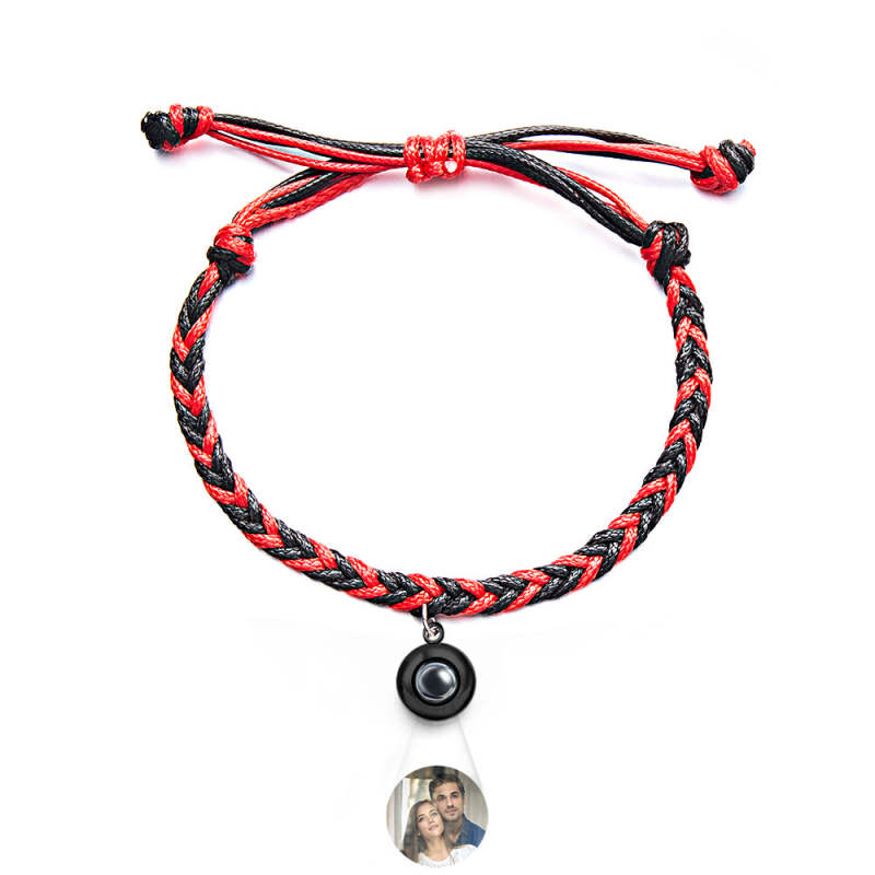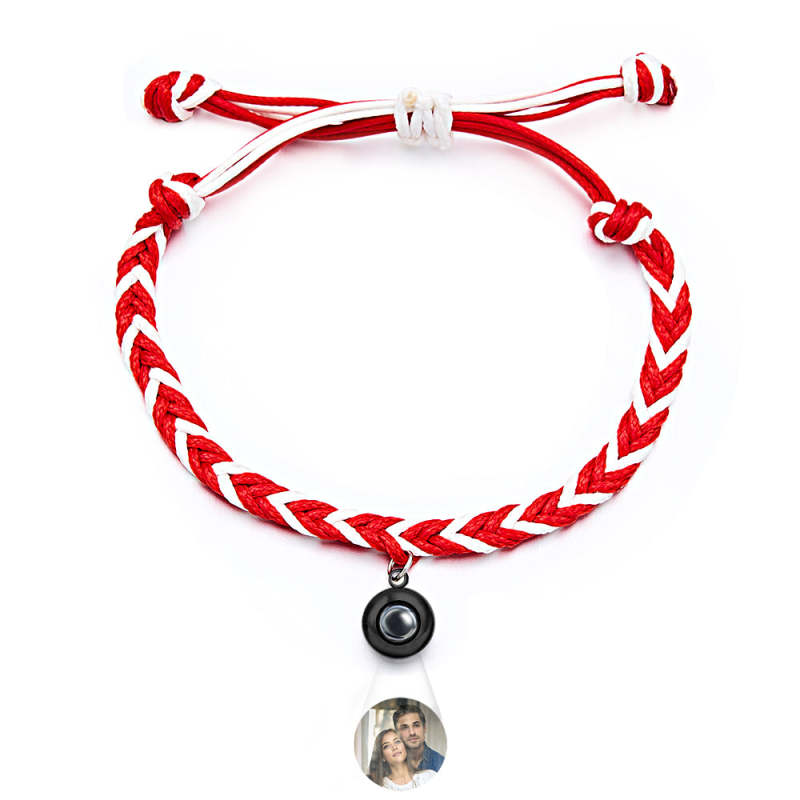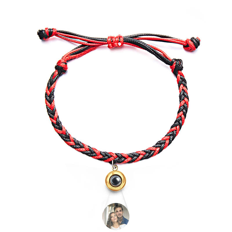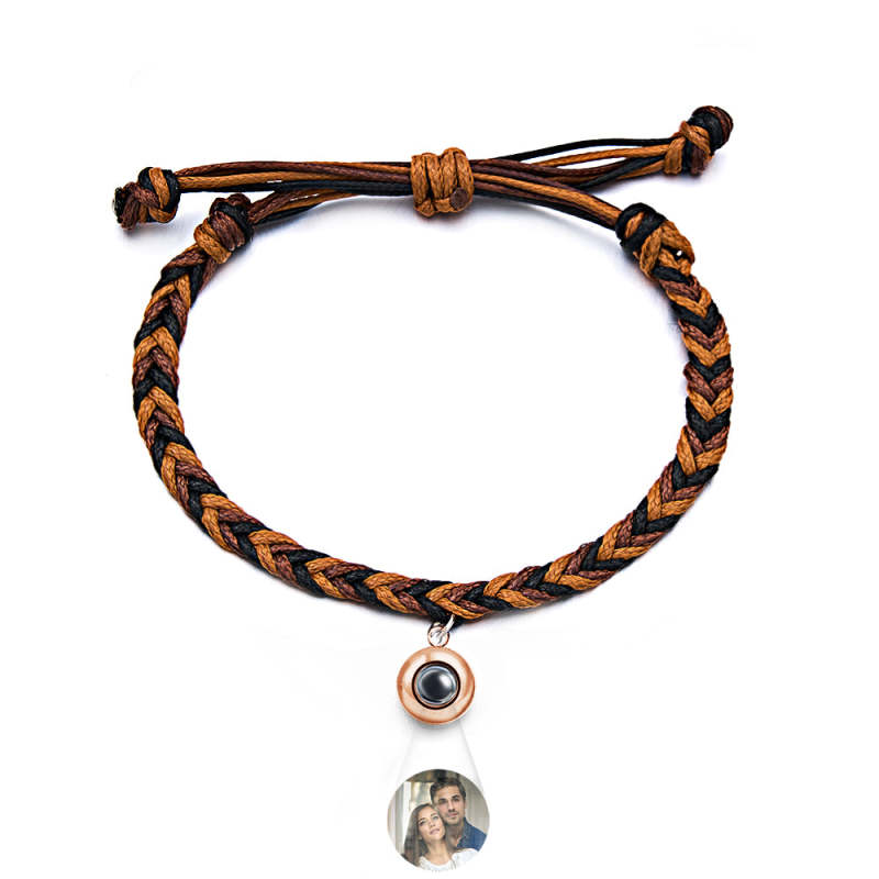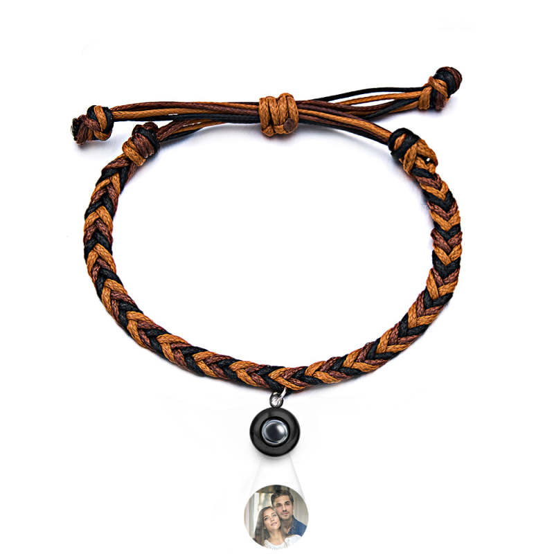 Personalized Projected Picture Bracelet Twist Rope With Round Pendant Warm Christmas Gift For Men