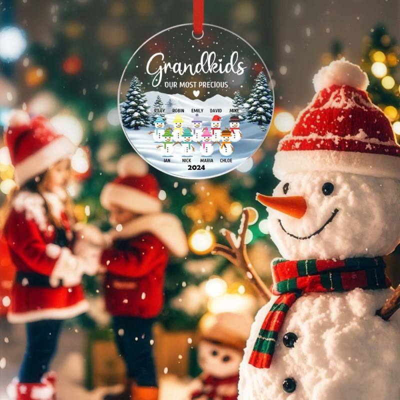 This personalized snowman ornament is the perfect Christmas gift for any family. With a customizable name feature, it adds a special touch to the holiday season. Made of high-quality materials, this ornament is a durable and festive addition to any decorate.