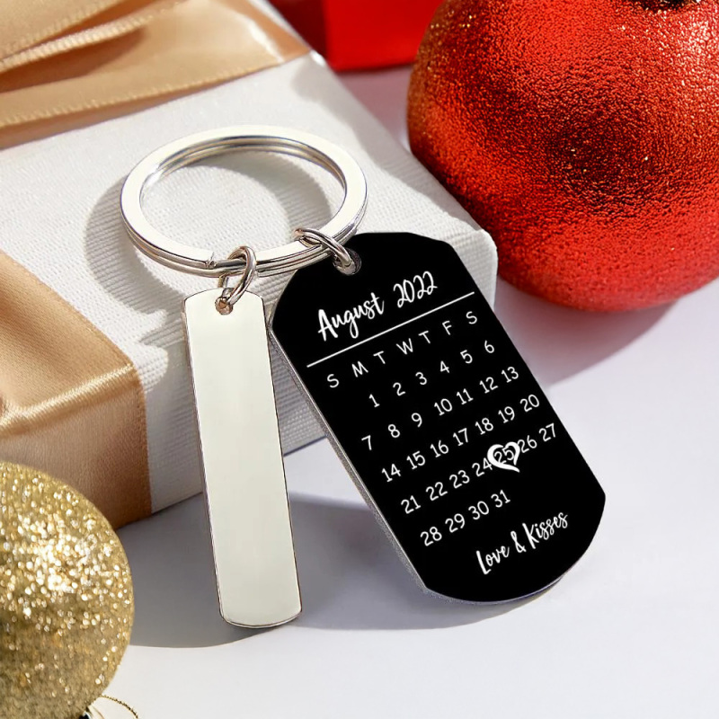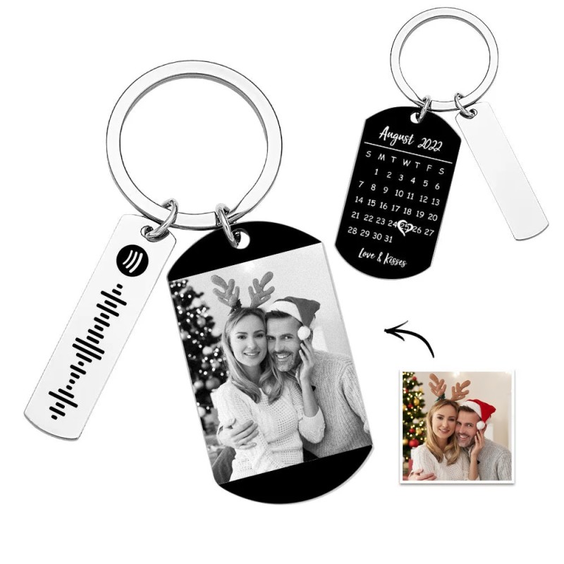Personalized Spotify Calendar Keychain Custom Picture & Music Song Code Couples Photo Keyring Christmas Gifts