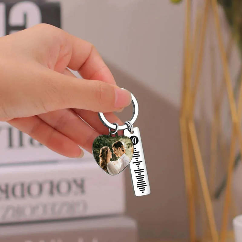 Personalized Spotify Keychain Custom Picture & Music Song Code Heart Couples Photo Keyring Gifts for Boyfriend