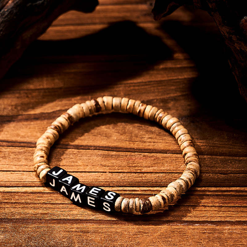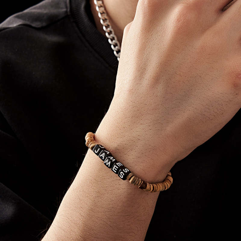 Our wooden beaded bracelets offer complete customization. You can choose any name or word, and we will customize the corresponding letter beads for you. Each letter is a bead, carefully strung together into a meaningful whole. Whether it's your name, the name of a loved one, or a word that has special meaning to you, we can create it just for you.