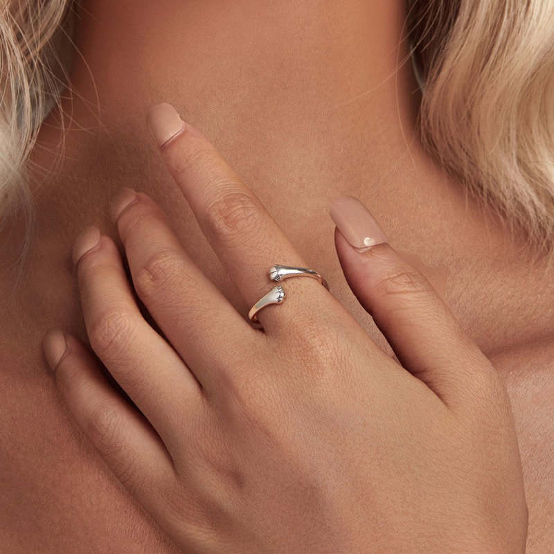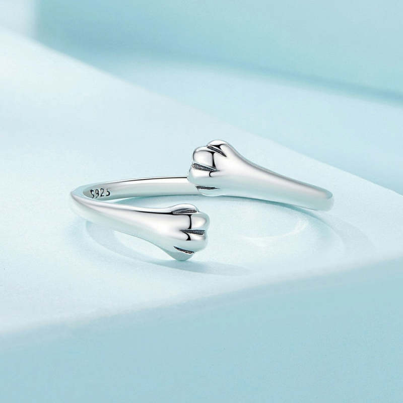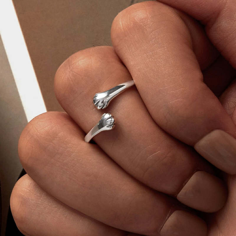 Pet Cat Hug Open Ring Silver