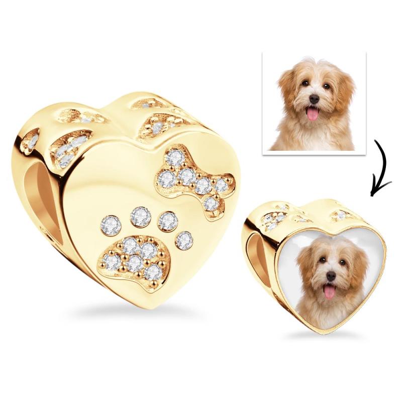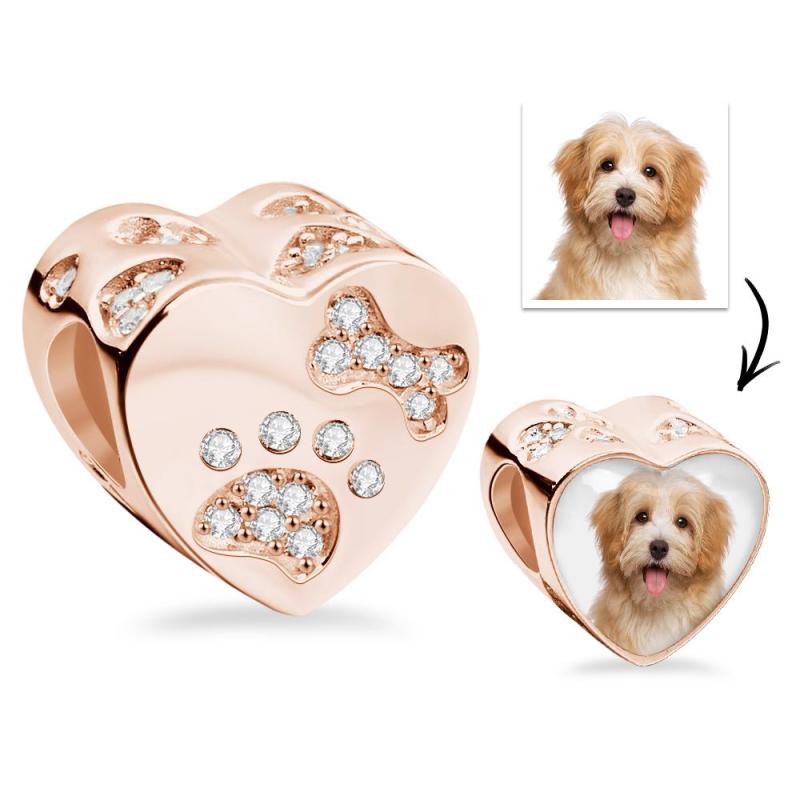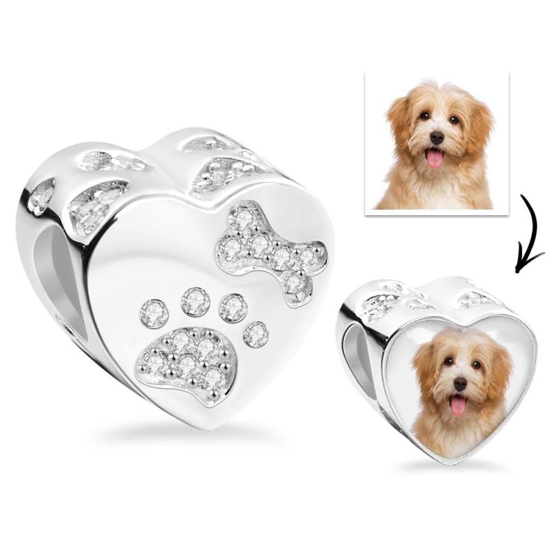 Photo Charm Lovely Pet Paw Bone Heart-Shaped Pendant For Her