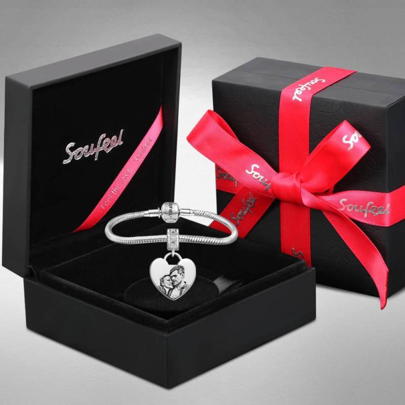 Personalised charm beads make for a fantastic gift giving option. Not only are they great for loved ones, but also one must always remember that it is a wonderful thing to treat themselves for beautiful jewelry from time to time. Featured here is a Soufeel Apple Crystal Photo Charm. This is a dual-sided heart bracelet bead. One side can be customized with a picture of your choice or the choice of the recipients. Some image ideas include family pets, spouses, significant others, parents, grandparents, aunts, uncles, and BFFs. Photo Charm with Heart-shaped, Custom Portrait Jewelry Platinum Plated - Silver.