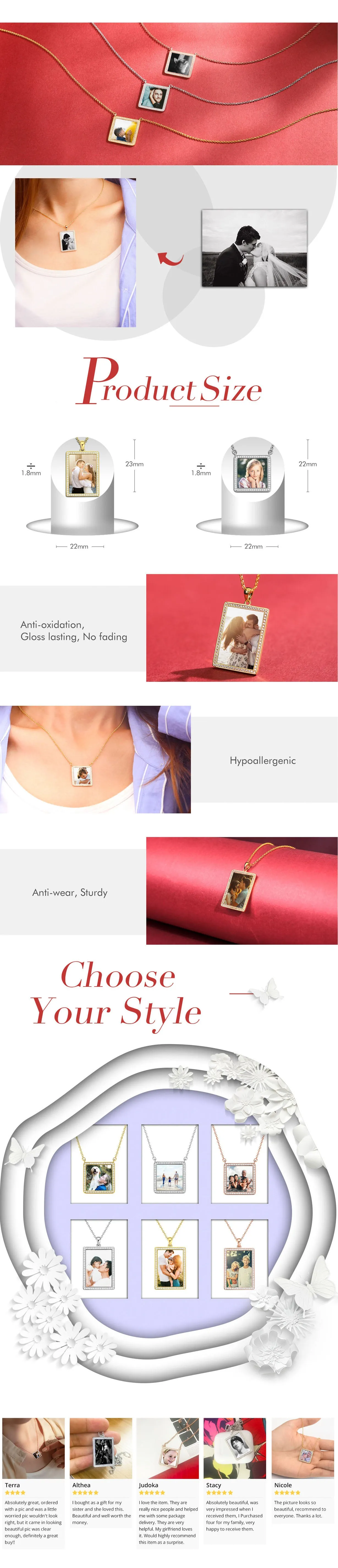 Personalised Soufeel Stainless Steel Tag Photo Pendant is the perfect way to keep your greatest memories close to the soul. This custom photo necklace is made of sturdy, stainless steel that will never tarnish so you can hold it close for many years to come. The perfect thoughtful, fun, and unique gift for any occasion! Soufeel has a ton of customized jewelry options that are reasonably priced and make for great gifts for all sorts of occasions like birthdays, holidays, anniversaries. The perfect thoughtful, fun, and unique gift for any pet lover on any occasion! Holidays, birthdays, weddings, or anniversaries - you name it, they'll LOVE it! Our artists will cut, crop, and place your photo on a beautiful & timeless necklace. Photo Engraved Necklace, Rhinestone Crystal Cute Necklace Platinum Plated Silver - Colorful