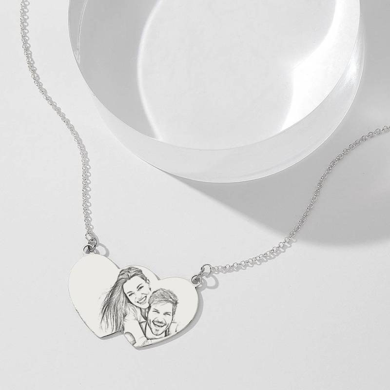 Photo Engraved Tag Necklace with Engraving Silver