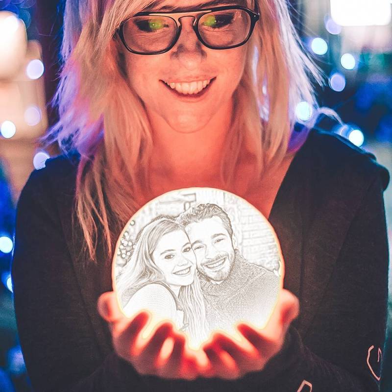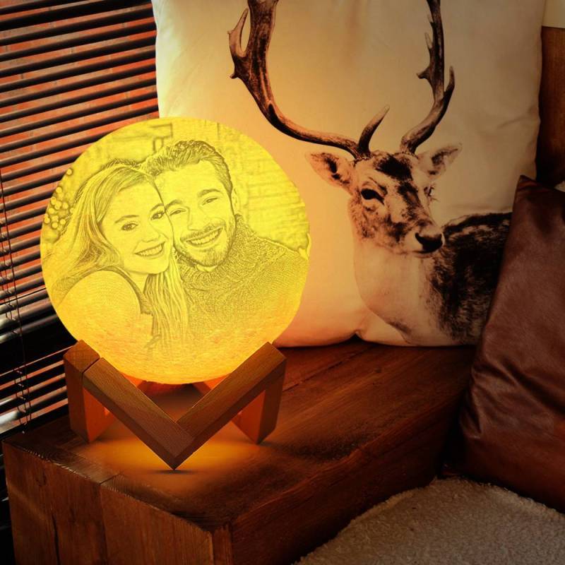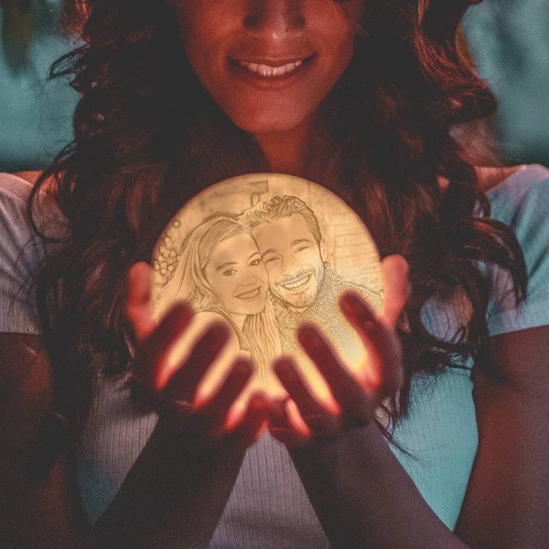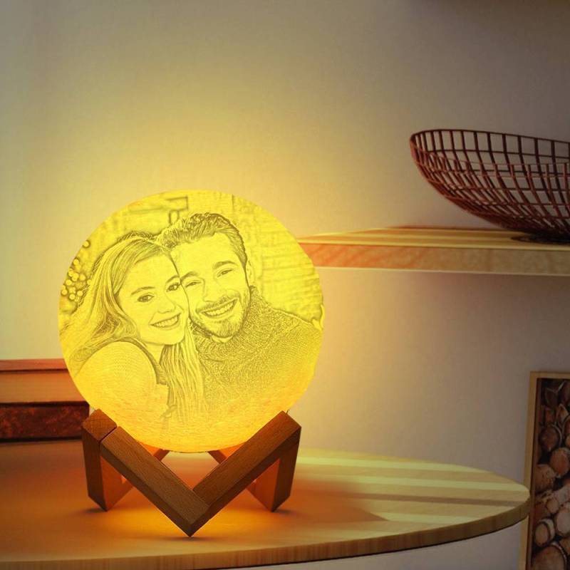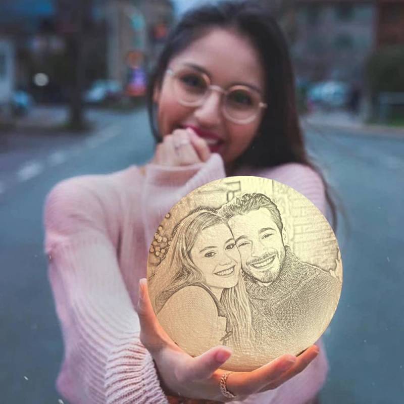 Photo Moon Lamp, Custom 3D Photo Light, Lamp Moon Couple's Gift - Touch Two Colors 15cm-20cm Available