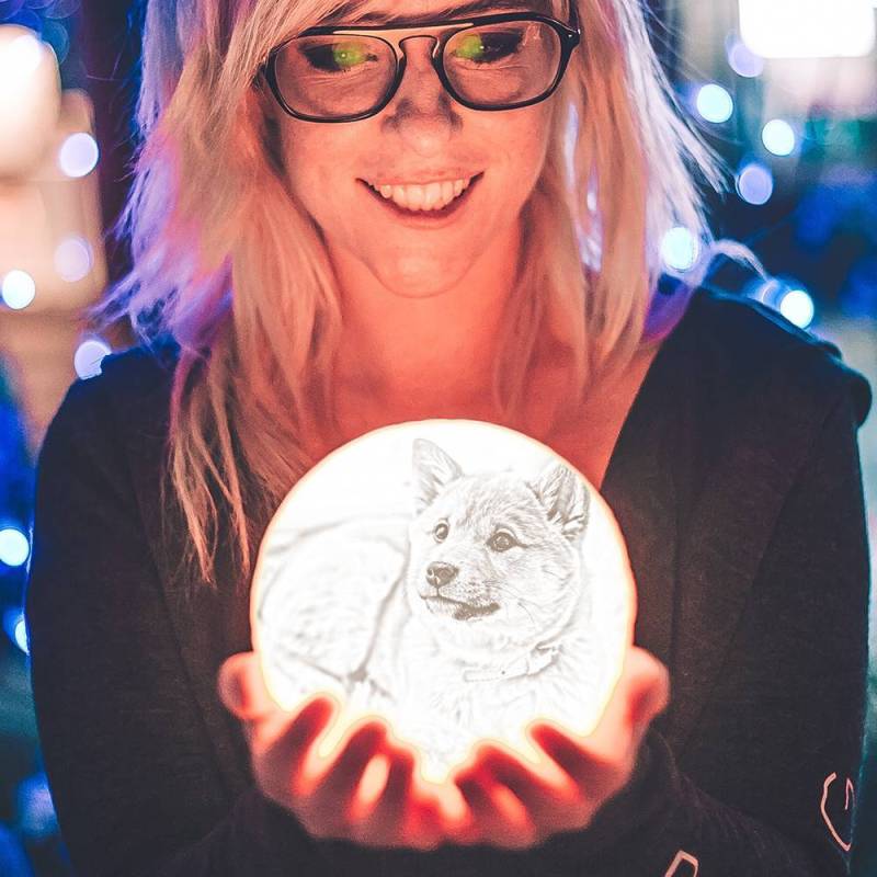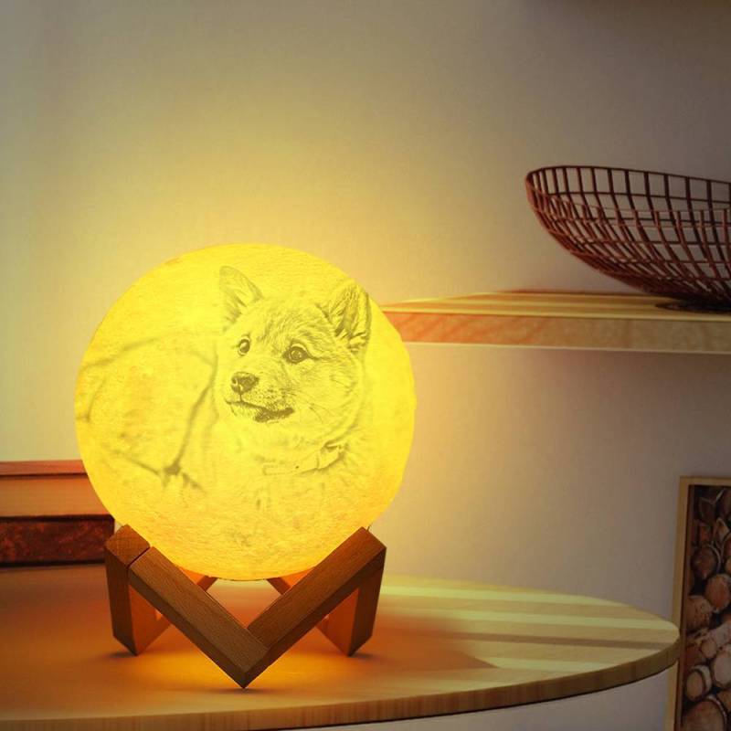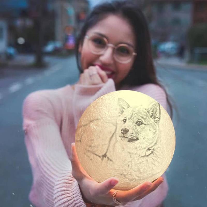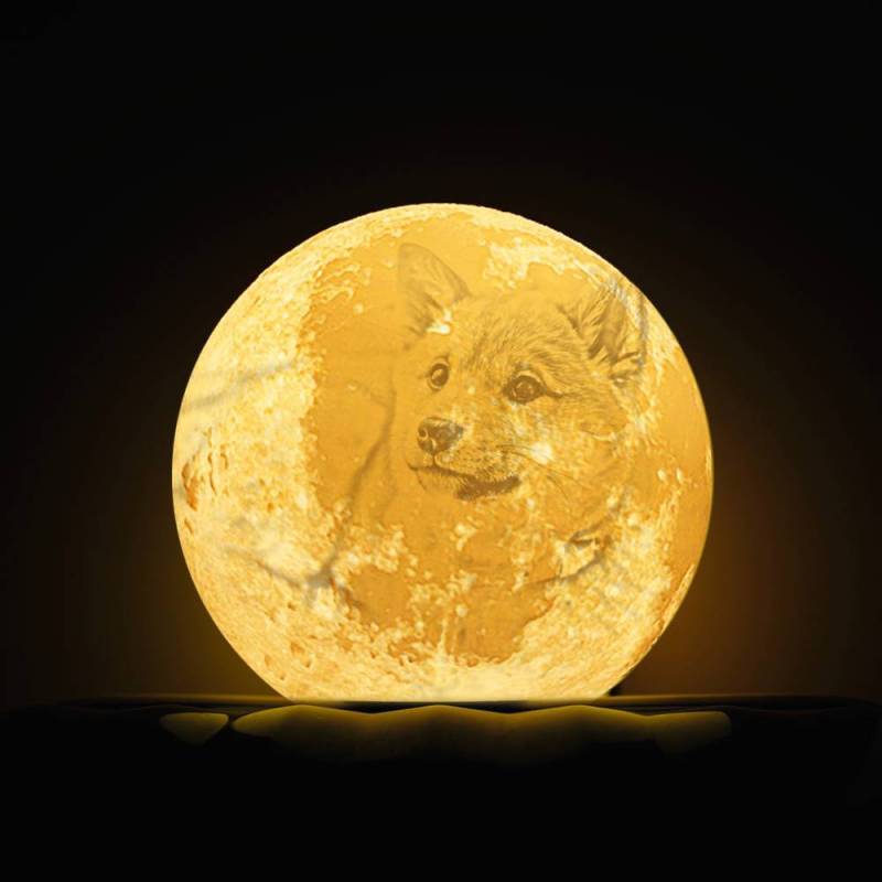 Photo Moon Lamp, Custom 3D Photo Light, Lamp Moon Cute Dog - Touch Two Colors 15cm-20cm Available