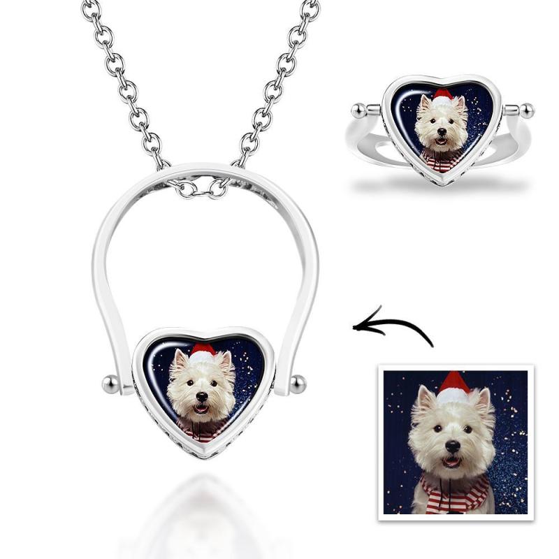 Photo Necklace, Photo Ring Gifts Dual-use (Ring Size 7#)