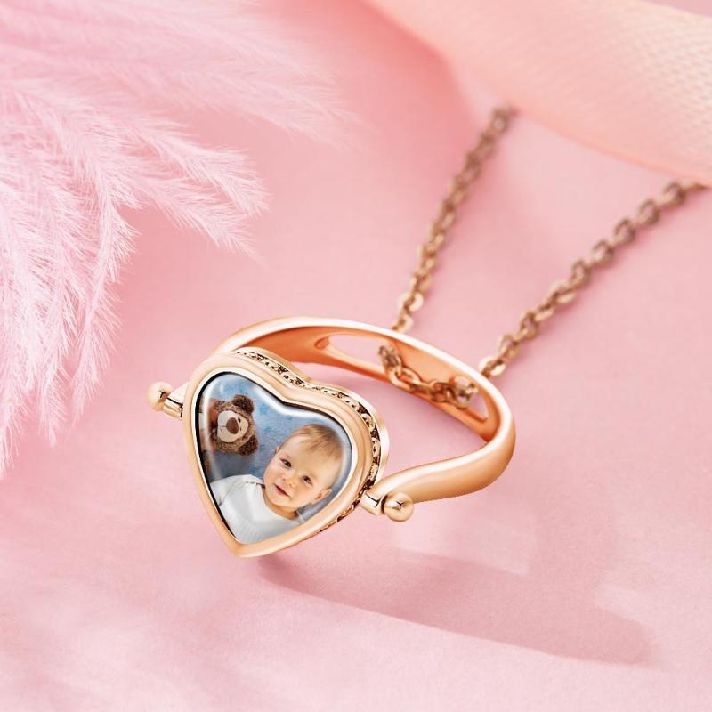 Photo Necklace, Photo Ring Gifts Dual-use (Ring Size 7#) Rose Gold Plated