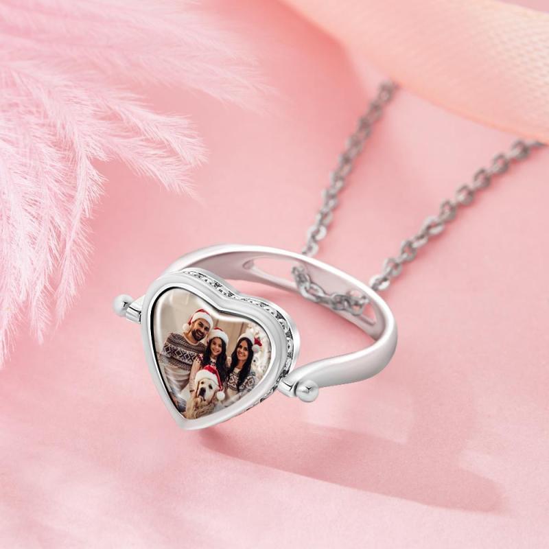 Photo Necklace, Photo Ring Gifts Dual-use (Ring Size 7#) Silver