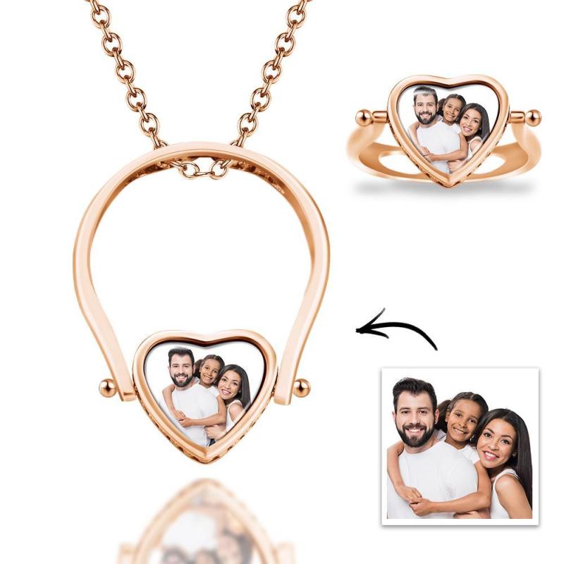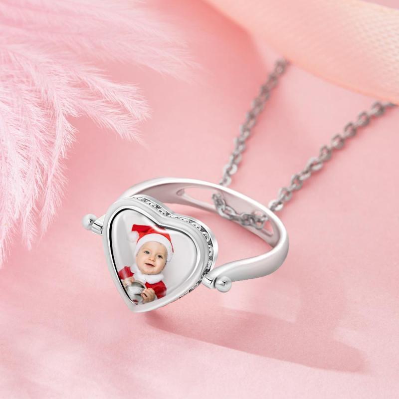 Photo Necklace, Photo Ring Couple's Gifts Dual-use (Ring Size 8#)
