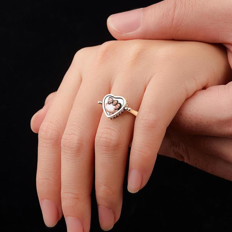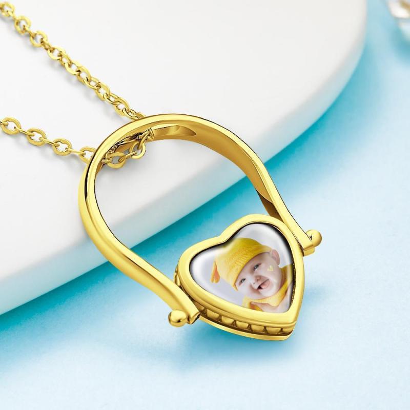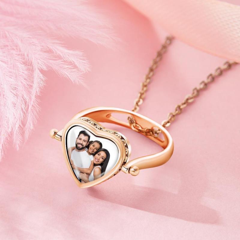 Photo Necklace, Photo Ring Couple's Gifts Dual-use (Ring Size 8#) 14k Gold Plated