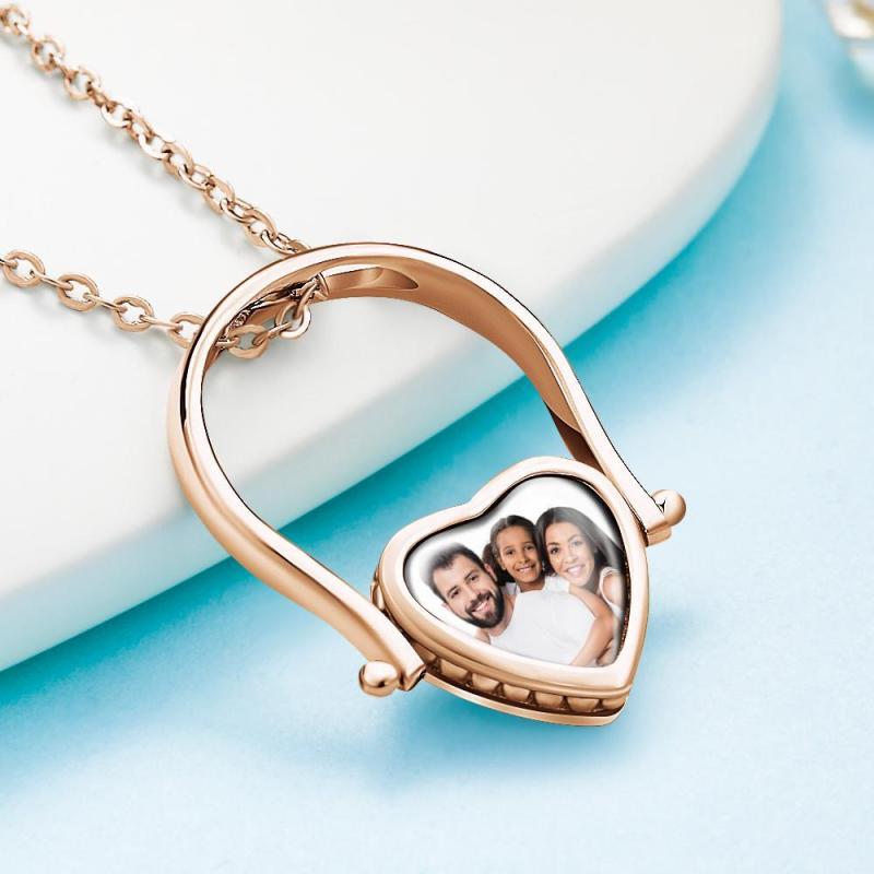 Photo Necklace, Photo Ring Couple's Gifts Dual-use (Ring Size 8#) Rose Gold Plated