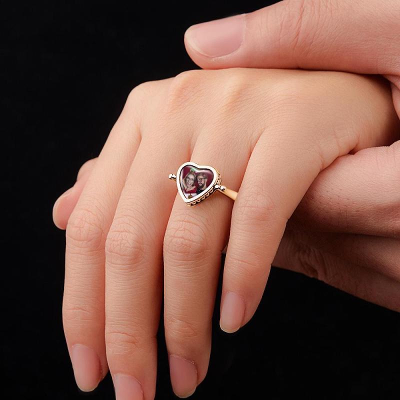 Photo Necklace, Photo Ring Couple's Gifts Dual-use (Ring Size 8#) Rose Gold Plated Silver