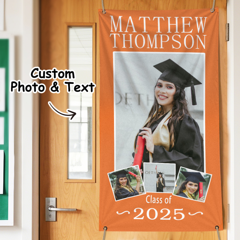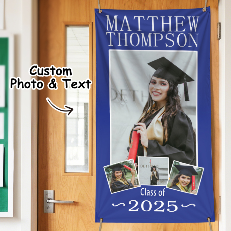 Celebrate your special achievement with our customizable Graduation Photo Banner. Made to showcase your proudest moment, this "Picture of Success" banner serves as a memorable home decor or graduation gift. Personalize it with your own photo and message to create a unique keepsake that honors your journey and success.