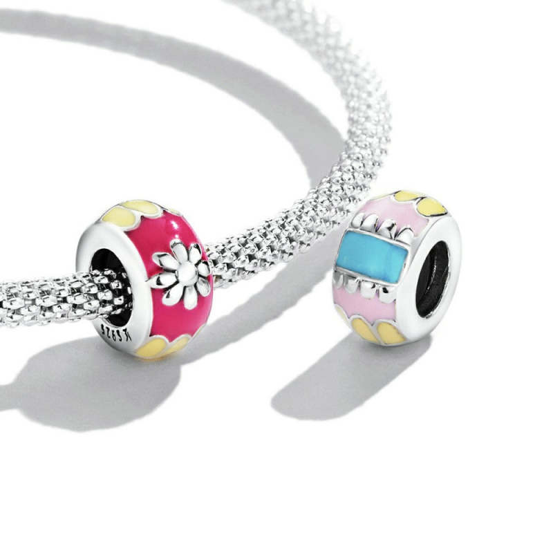 Pink and Yellow Stopper Charm Spacer Charm Silver