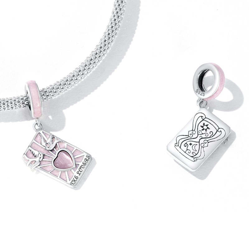 Pink The Lovers Tarrot Dangle Charm Silver