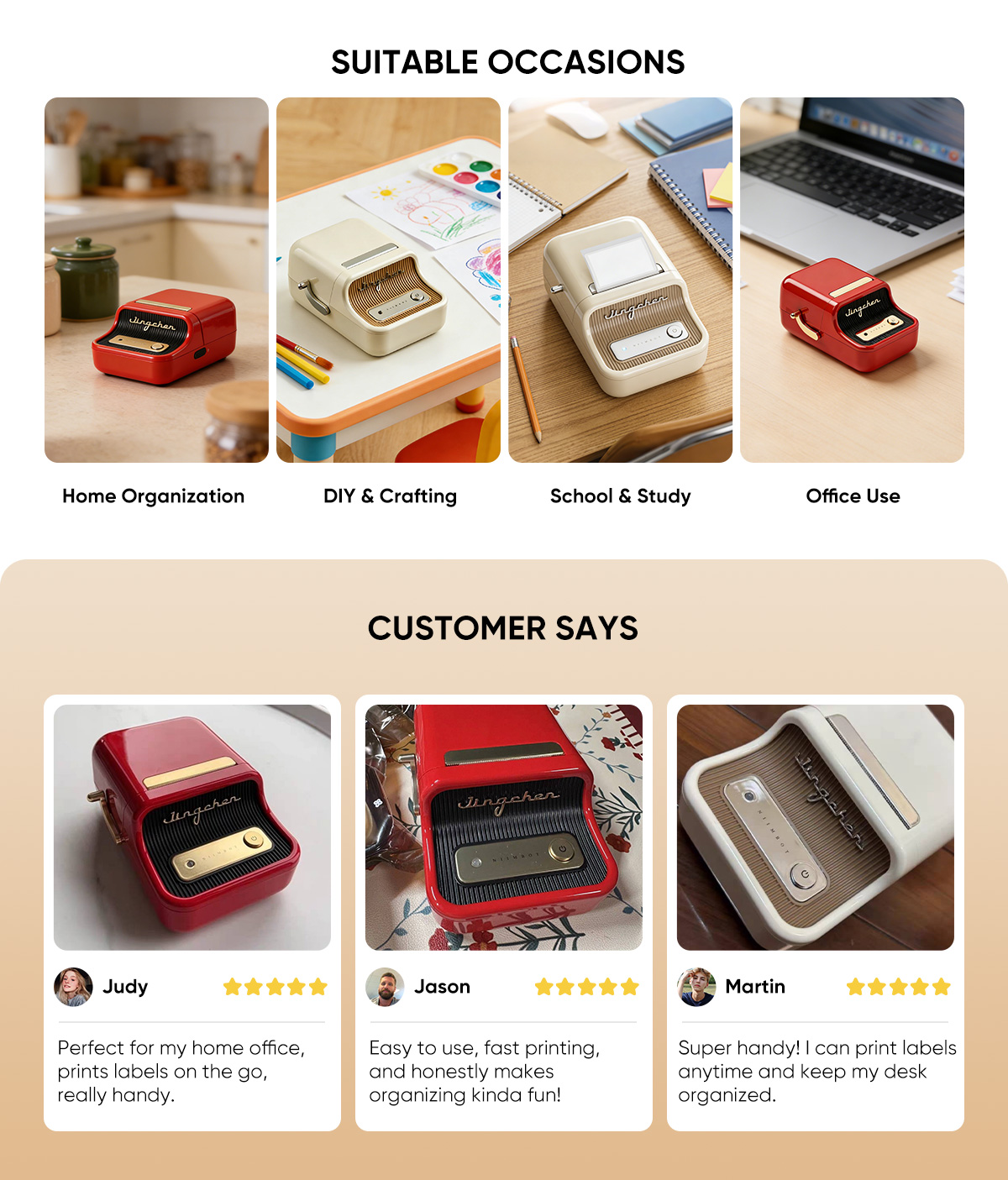 With its built-in 1500 mAh rechargeable battery, the printer offers long-lasting performance and can work for weeks on a single charge. Just connect via Bluetooth and use the free app (available for iOS and Android) to design and print your own labels in seconds.