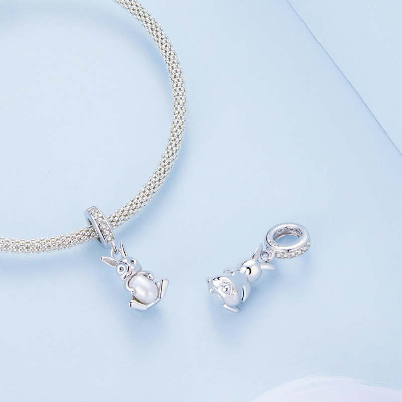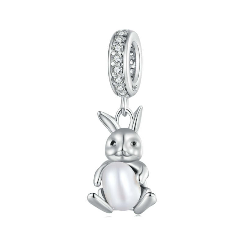 Rabit Hug Pearl Dangle Charm Silver