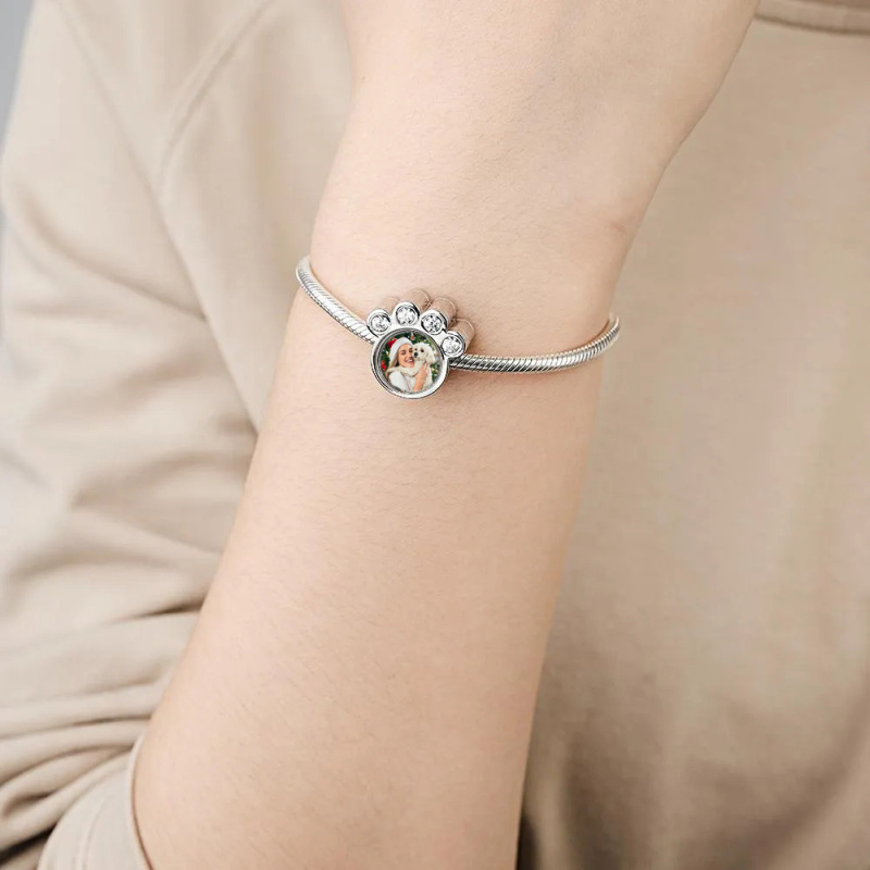 Personalised Paw Photo Charm of Bracelet Custom Picture Charm Cute Pet Photo Bead Fits Bracelet Necklace Anniversary Gift for Christmas