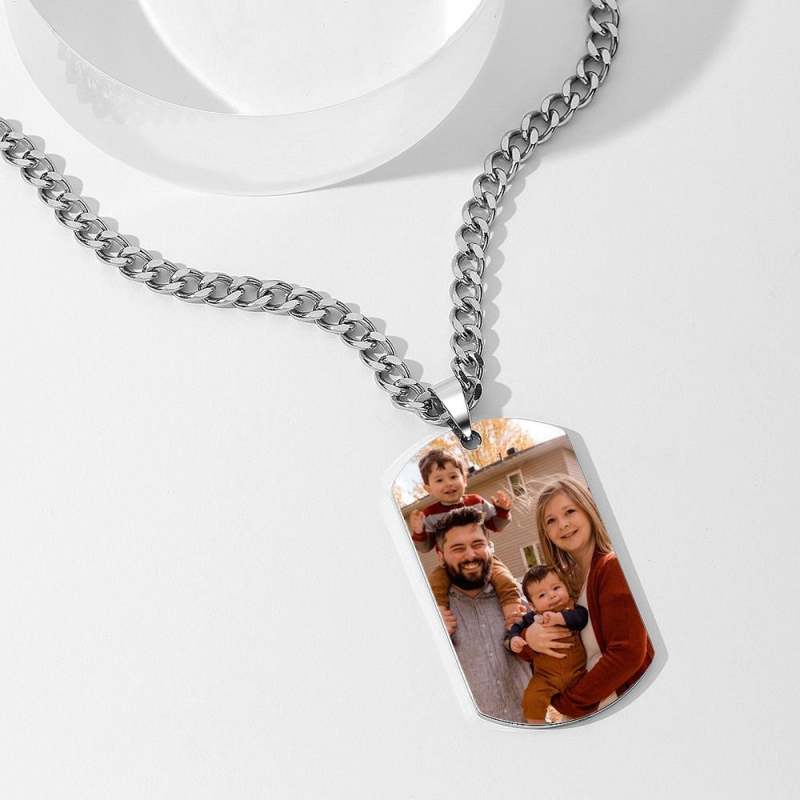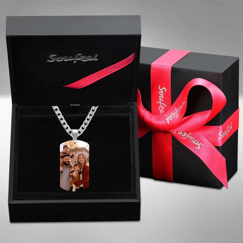 Dress up your outfit with a fabulous charm necklace by Soufeel. There are so many different pre-made options to select from, however there are also many ways to create your own customized pieces. For something extra special, Soufeel photo charm necklaces and lockets allow you to add in photo memories that you will want to hold close to your heart. You also have the option of ordering plain chains and charms separately so that you can change up your necklace whenever you want. Wear necklaces with one or more charm depending on your fashion mood for the day. You could also gift a jewelry fan in your life with a variety of chains so that they have something to slip their charms onto when they don't want to wear them on bracelets. Men's Photo Tag Necklace with Engraving Stainless Steel.