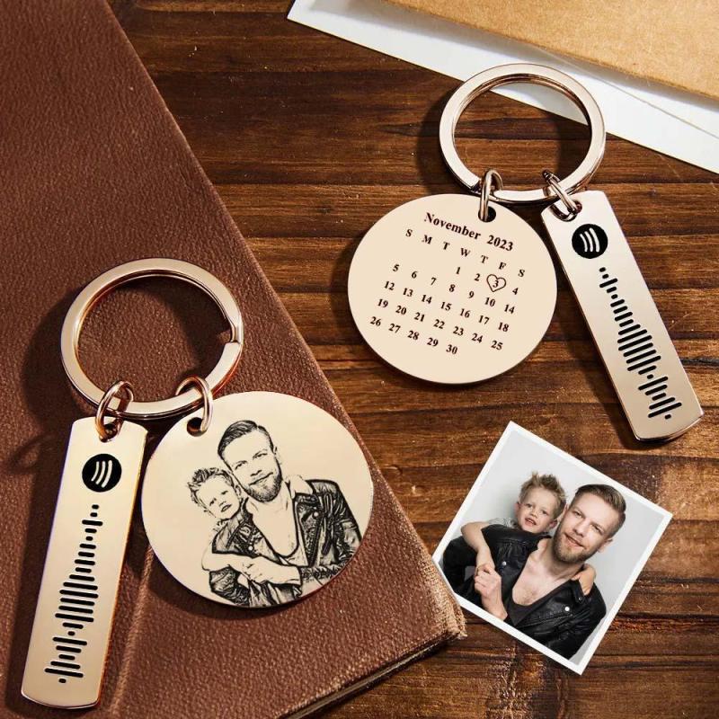 Custom Photo Calendar Spotify Keychain Personalized Stainless Steel Keychain Father's Day Gift