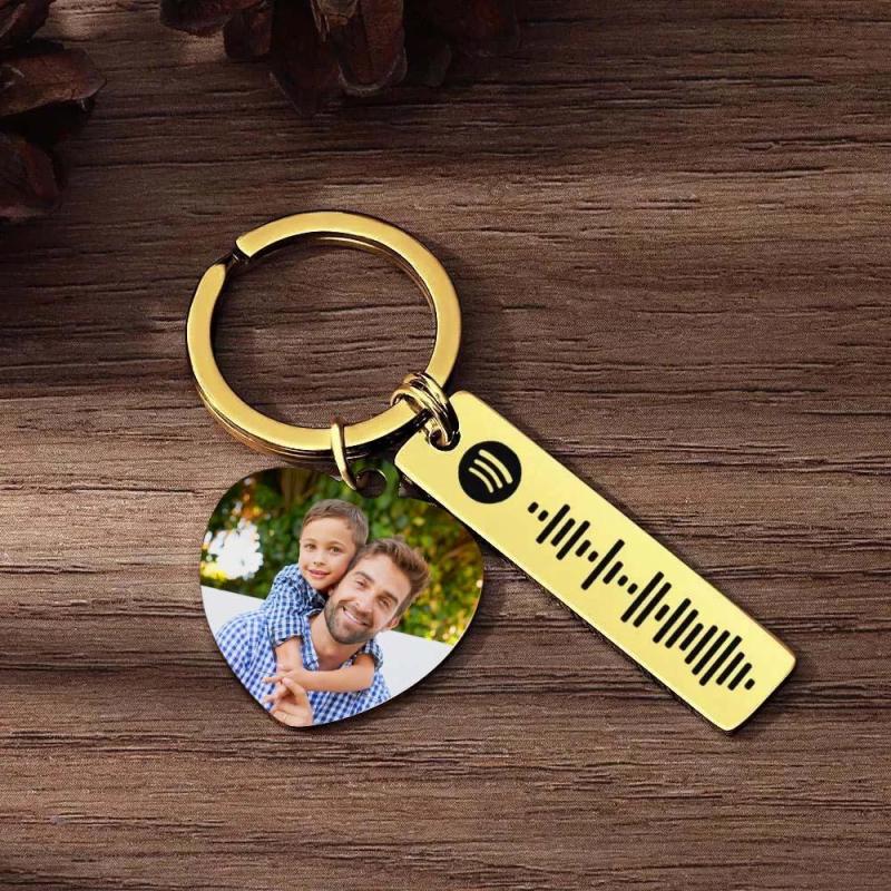 Personalized Spotify Keychain Custom Picture & Music Song Code Heart Photo Keyring Father's Day Gifts for Dad