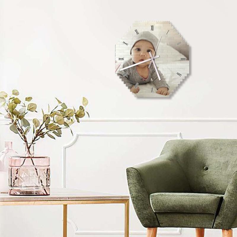 Custom Building Block Wall Clock Personality Puzzle Custom Photo Pointer Brick Clock Gift For Kids