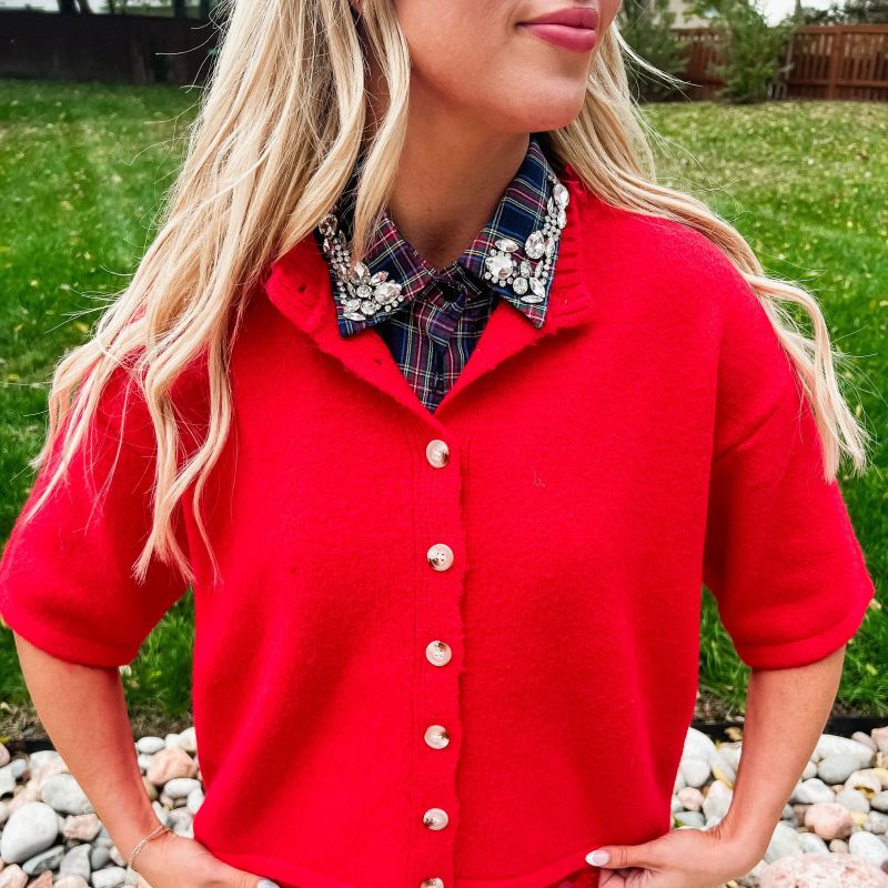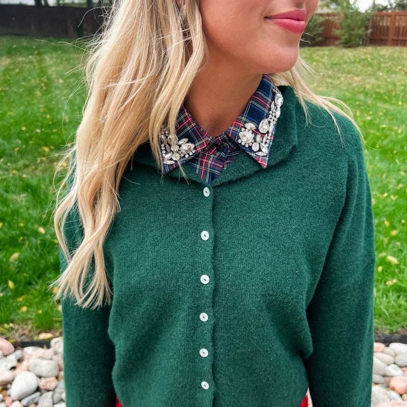 Add a sparkling twist to your holiday outfit with this Red Christmas Plaid Rhinestone Collar. Its festive red plaid pattern combined with shimmering rhinestones brings a playful and unique flair, making any look instantly more joyful and bright for the season. Perfect for spreading holiday cheer in style!
