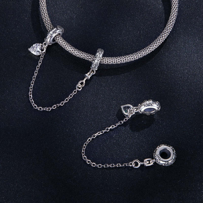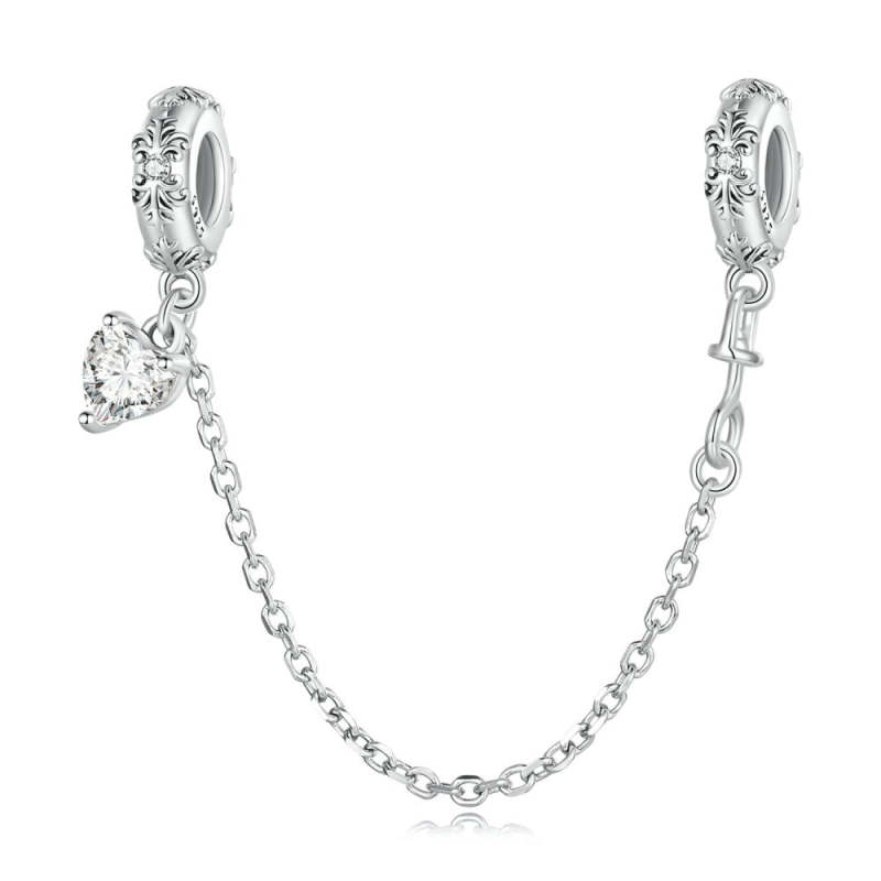 Retro Pattern Safety Charm Chain Silver